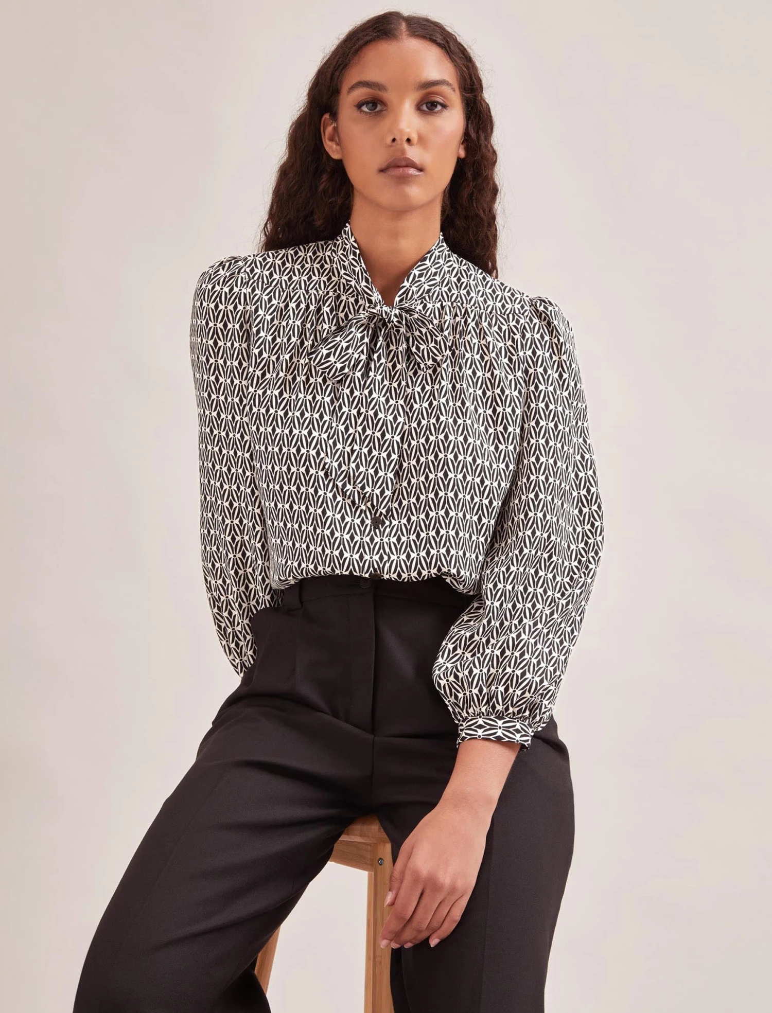 It goes without saying that day-to-night tops are a mainstay of any capsule wardrobe – whether you’re in the office, WFH or meeting friends for drinks. And when they’re machine-washable and crease-resistant, like Aubrey, you can’t go wrong. Adding graphic interest to smart staples, team it with our Arlo leather skirt for an edgy spin or a tailored trouser such as Terence or Clement.