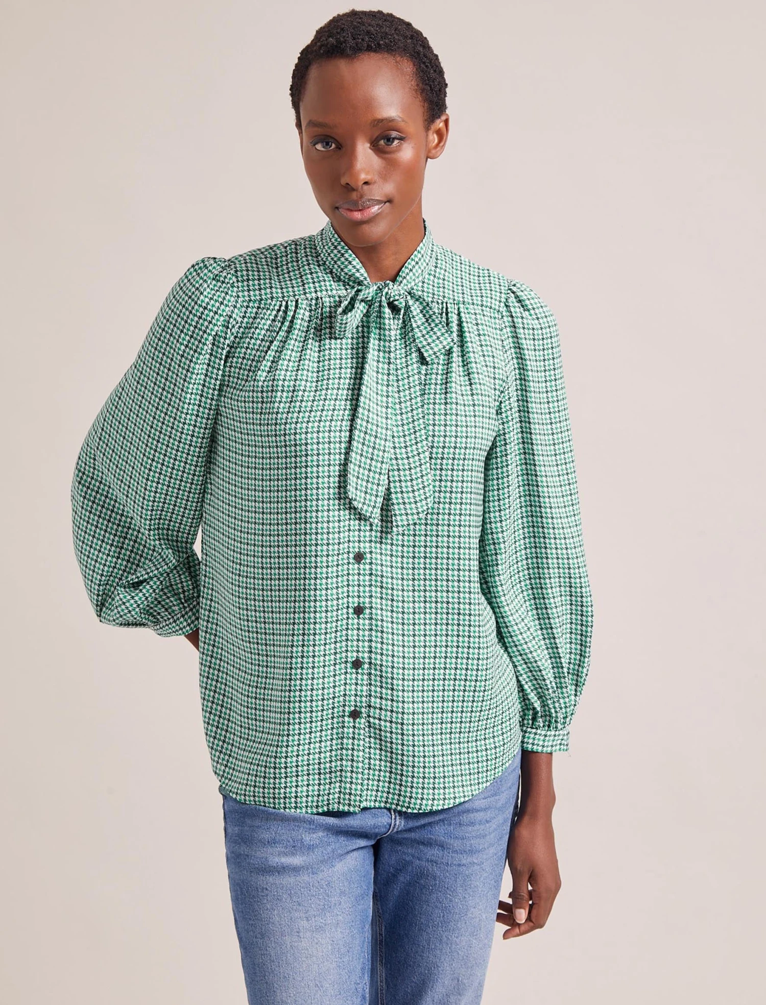 It goes without saying that day-to-night tops are a mainstay of any capsule wardrobe – whether you’re in the office, WFH or meeting friends for drinks. And when they’re machine-washable and crease-resistant, like Aubrey, you can’t go wrong. Adding graphic interest to smart staples, team it with our Arlo leather skirt for an edgy spin or a tailored trouser such as Terence or Clement.