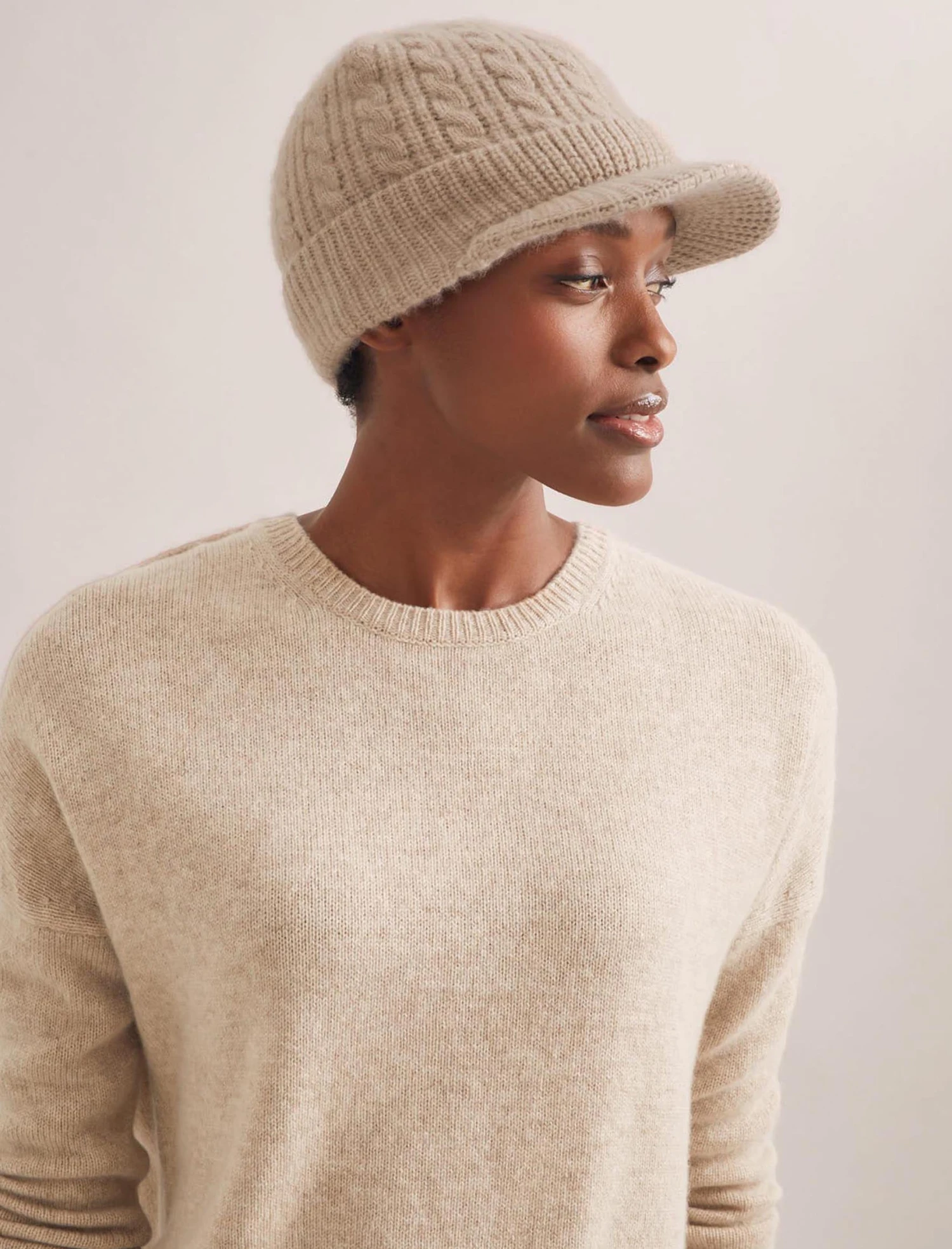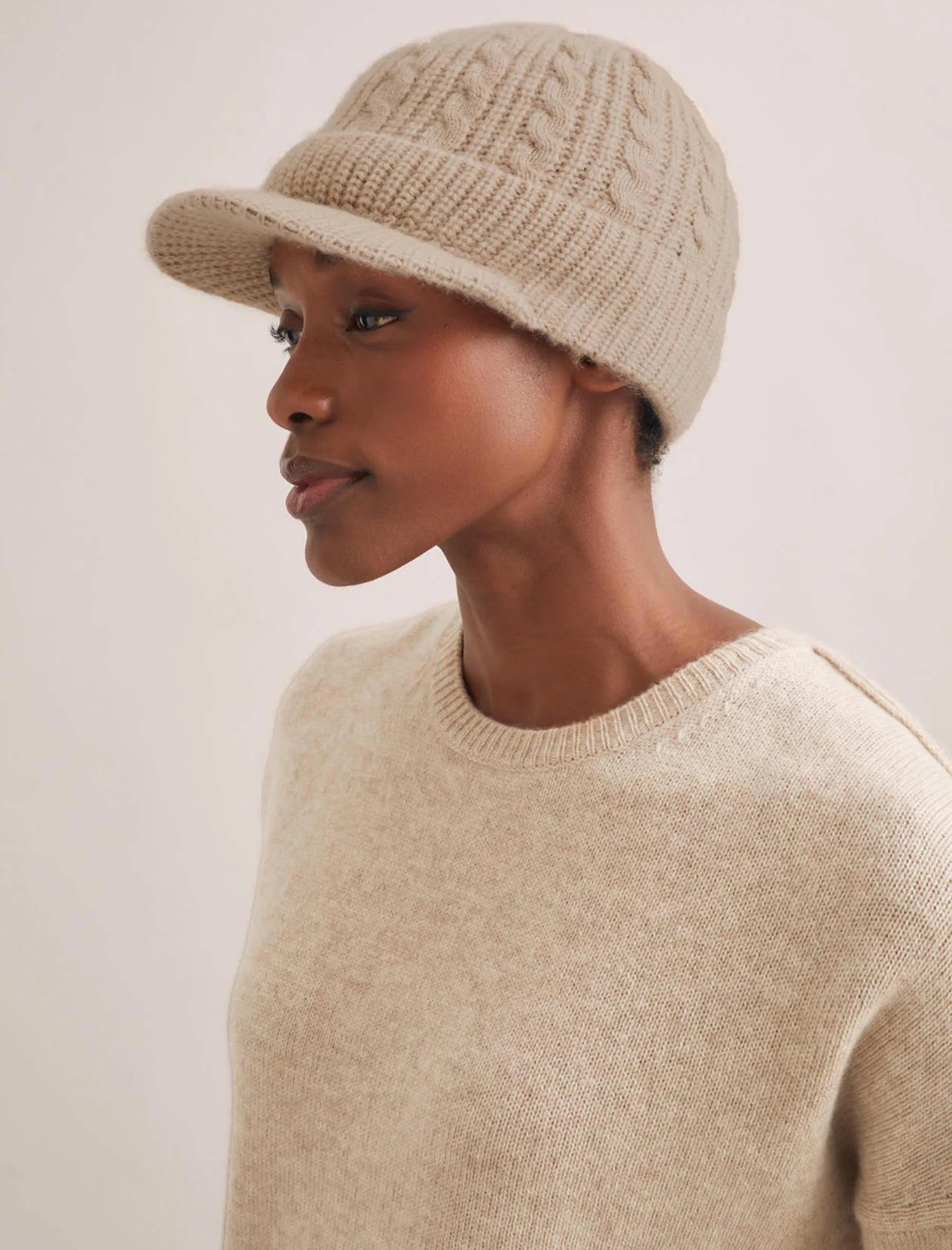 A chic addition to any winter wardrobe, our new cashmere Beata hat has a distinctive cap peak and cable knit. Gloriously snug and seriously soft, it’ll make a welcome addition to your winter accessories wardrobe and also makes the perfect luxe gift.