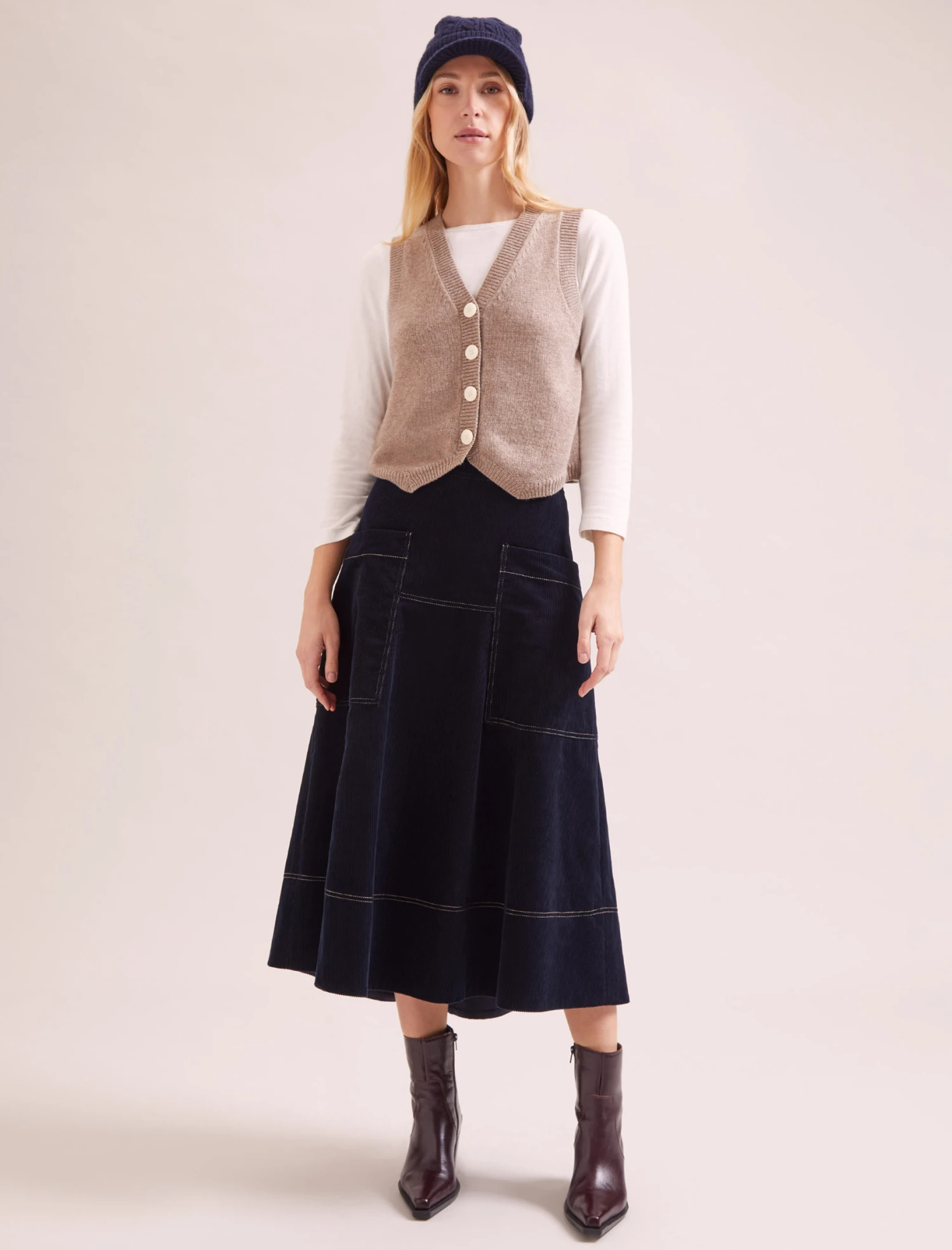 A chic addition to any winter wardrobe, our new cashmere Beata hat has a distinctive cap peak and cable knit. Gloriously snug and seriously soft, it’ll make a welcome addition to your winter accessories wardrobe and also makes the perfect luxe gift.
