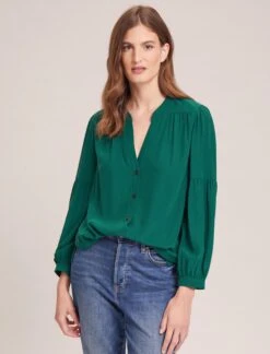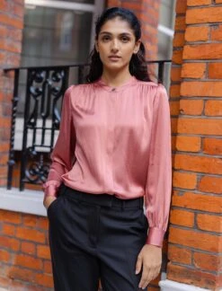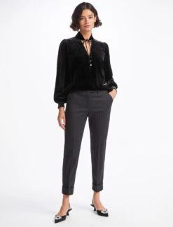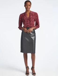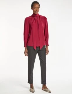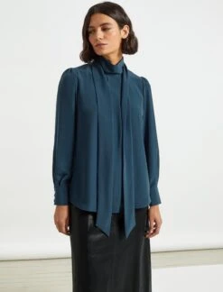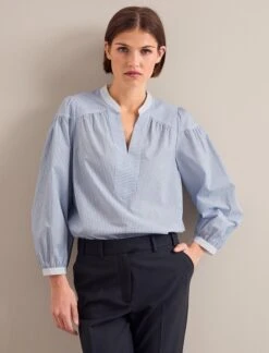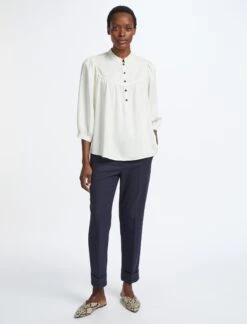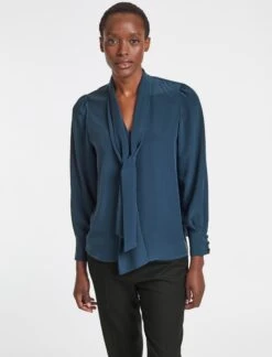 Erin Silk Sleeveless Funnel Neck Blouse – Navy Spiral Clouds Print