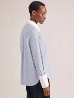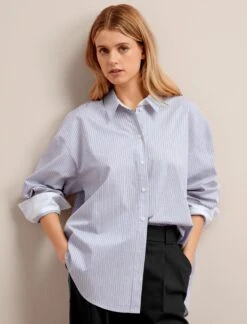 Sammy Organic Cotton Oversized Shirt – Wide Blue White Stripe