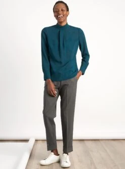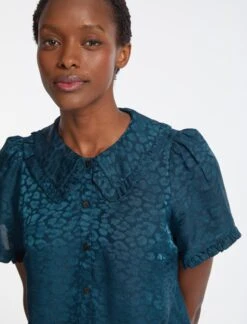 Nessa Long Sleeve Frill Cotton Seersucker Blouse – Black/Cream Check