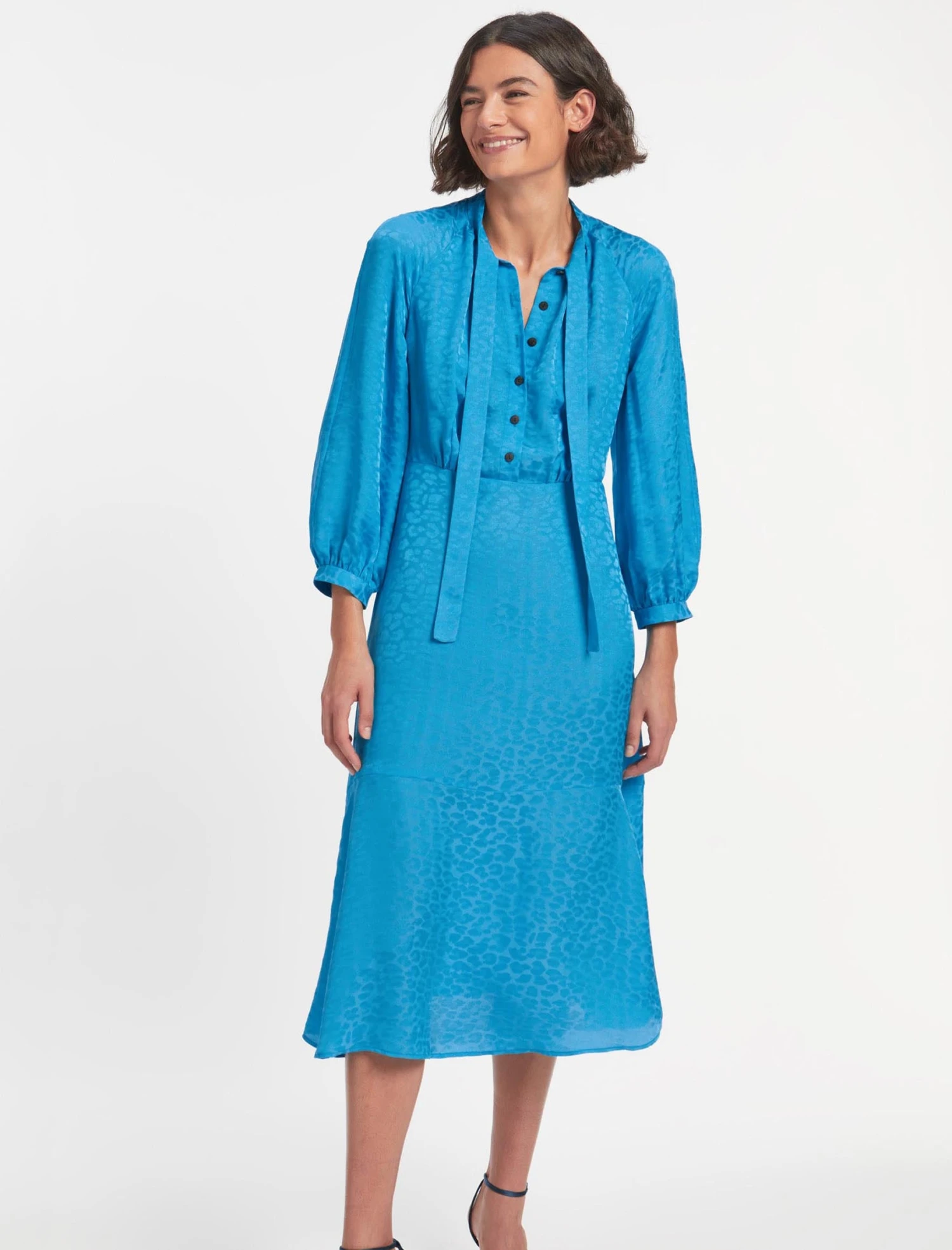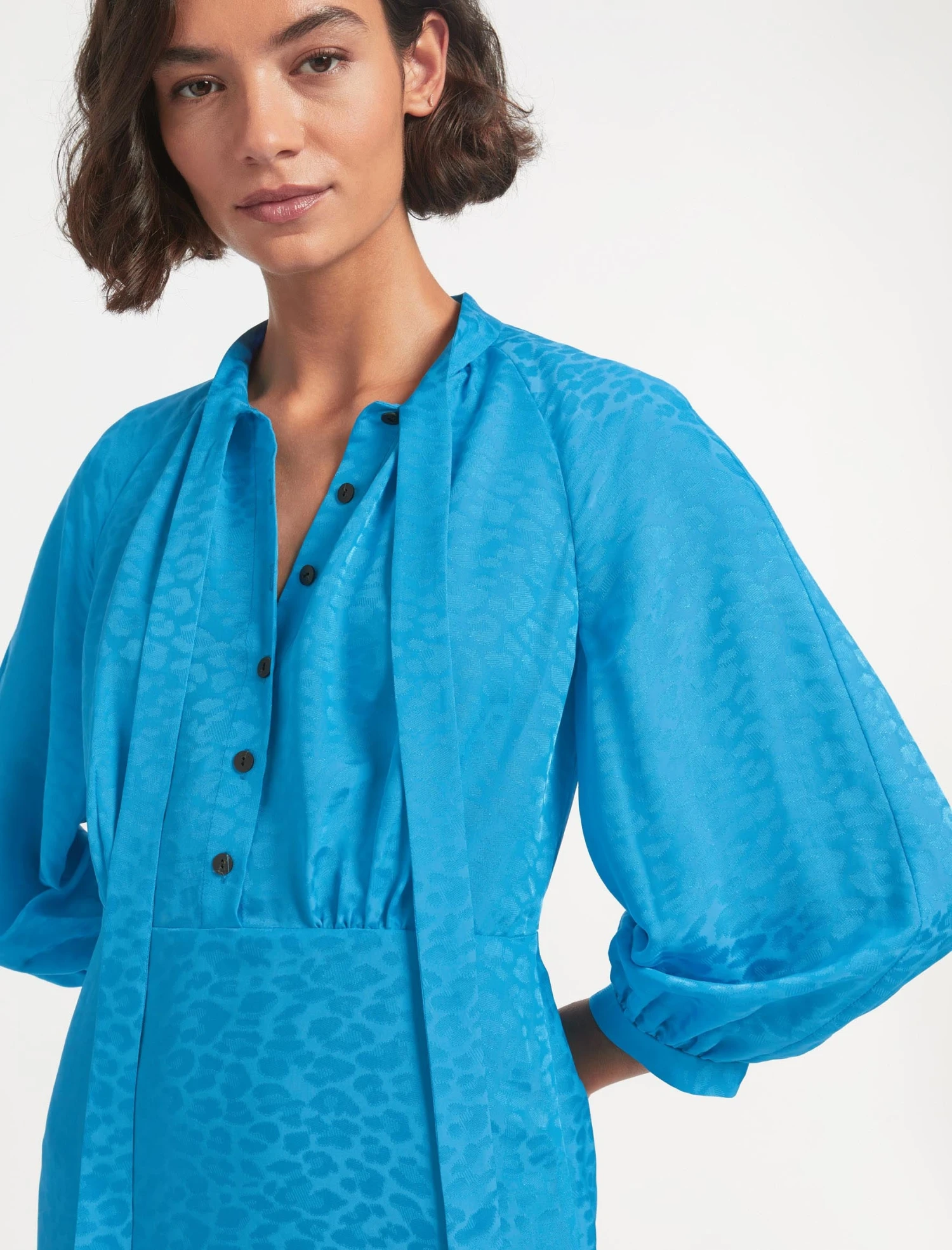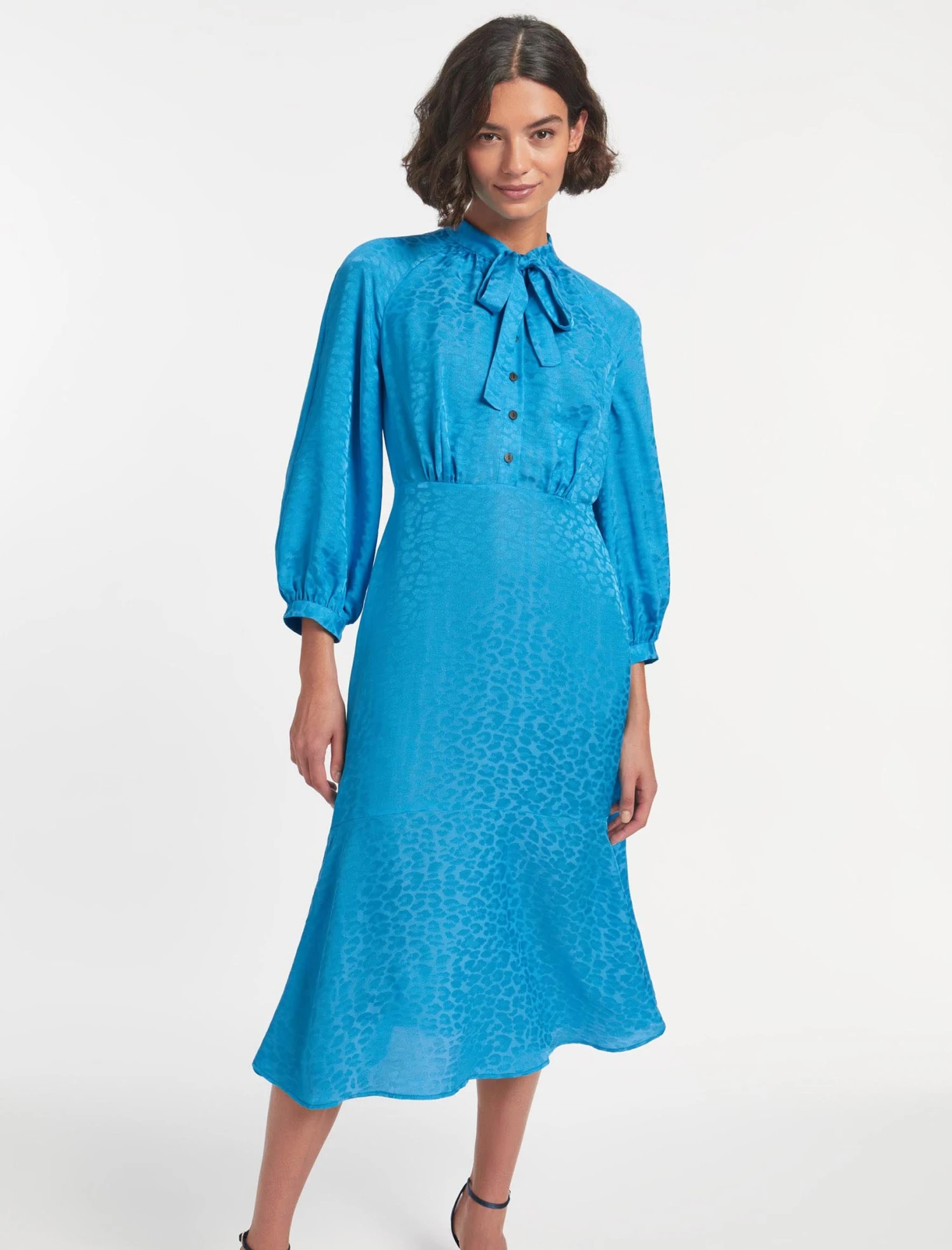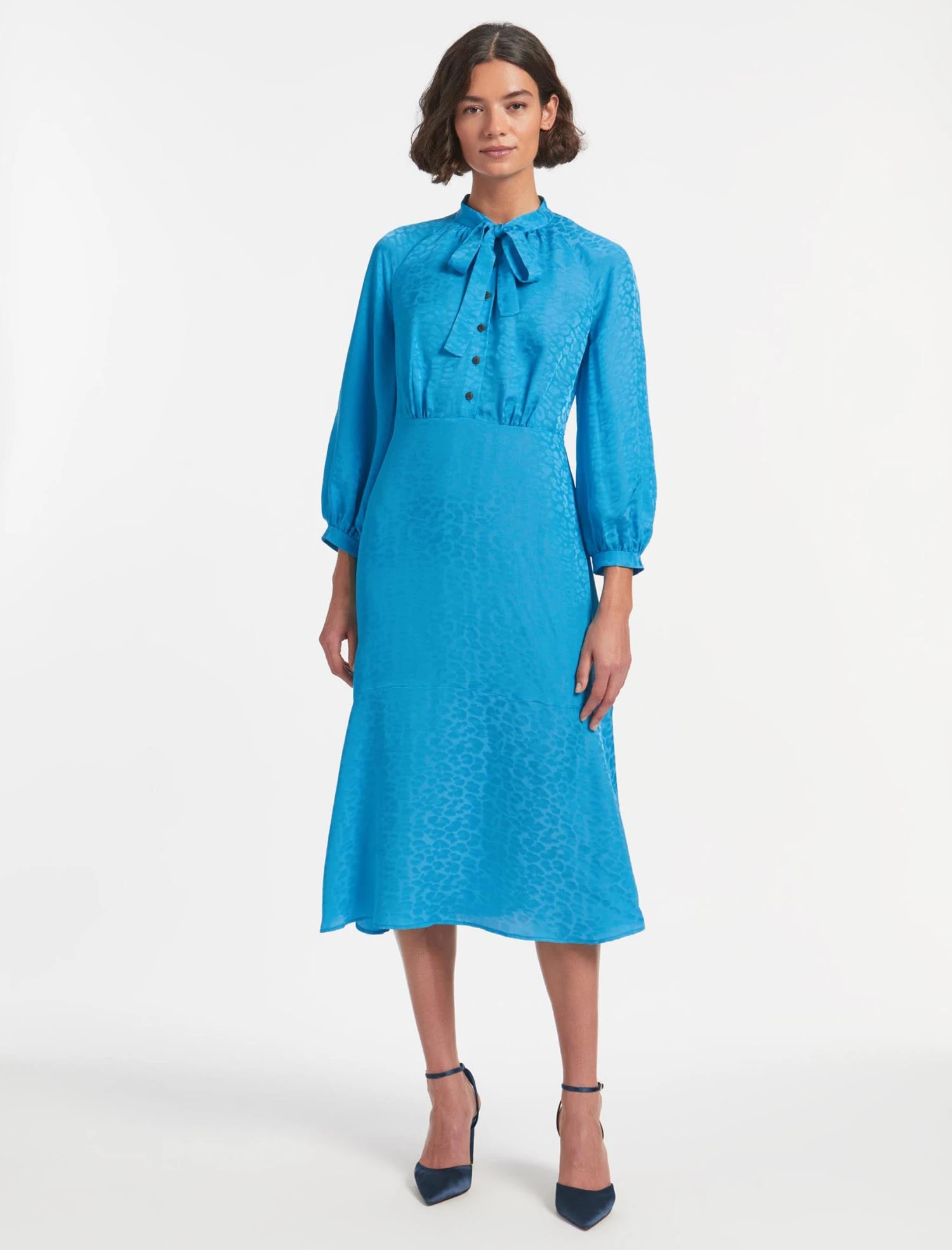 Our colour-pop silk-blend Daria dress is guaranteed to make a statement this season. The classic pussy-bow midi style has three-quarter-length raglan sleeves, a loose waist that can be nipped in with the slender belt and rouleaux loops, and side slits for ease of movement. Worn with a heel and a hint of lipstick, you’ll look (and feel) a million dollars.