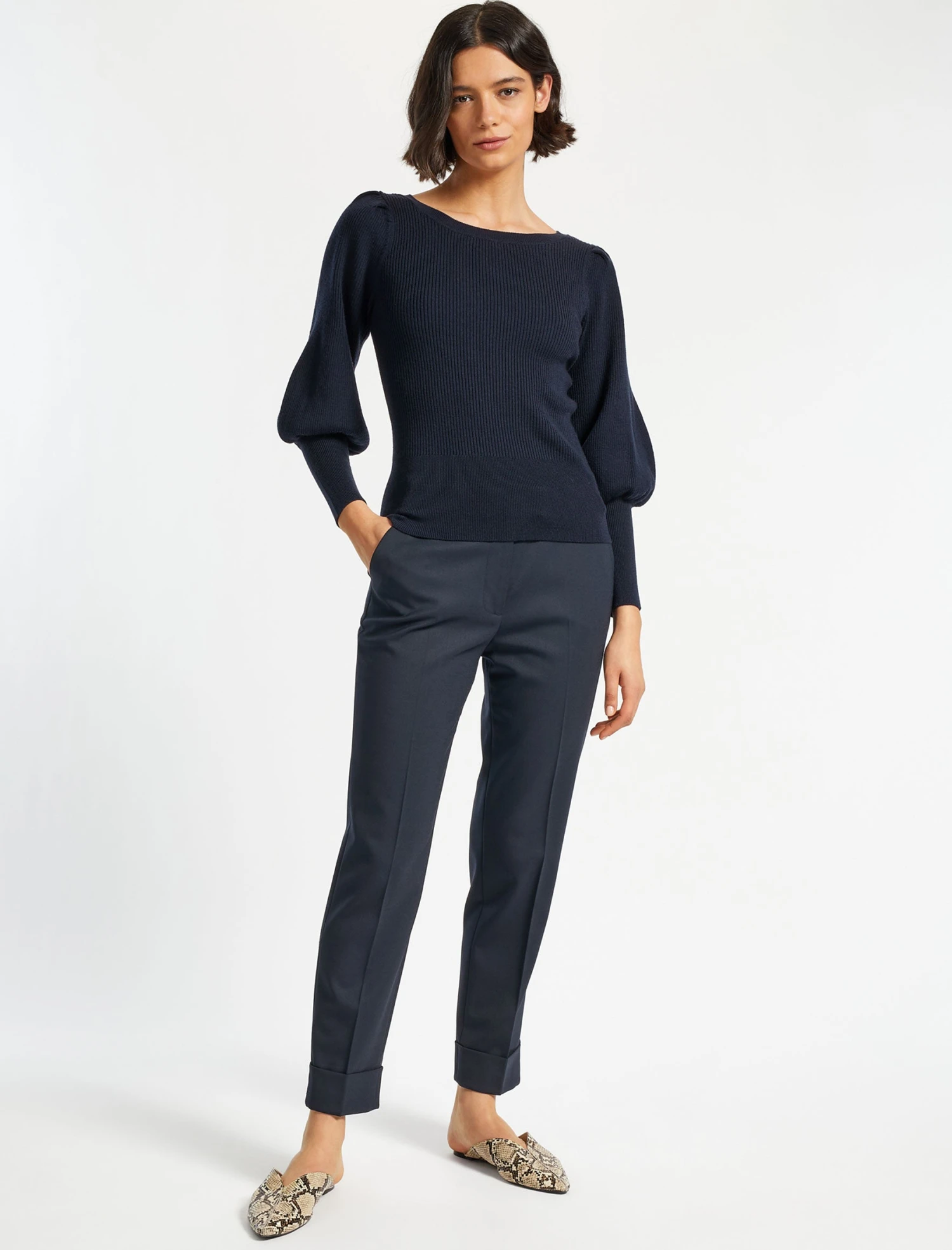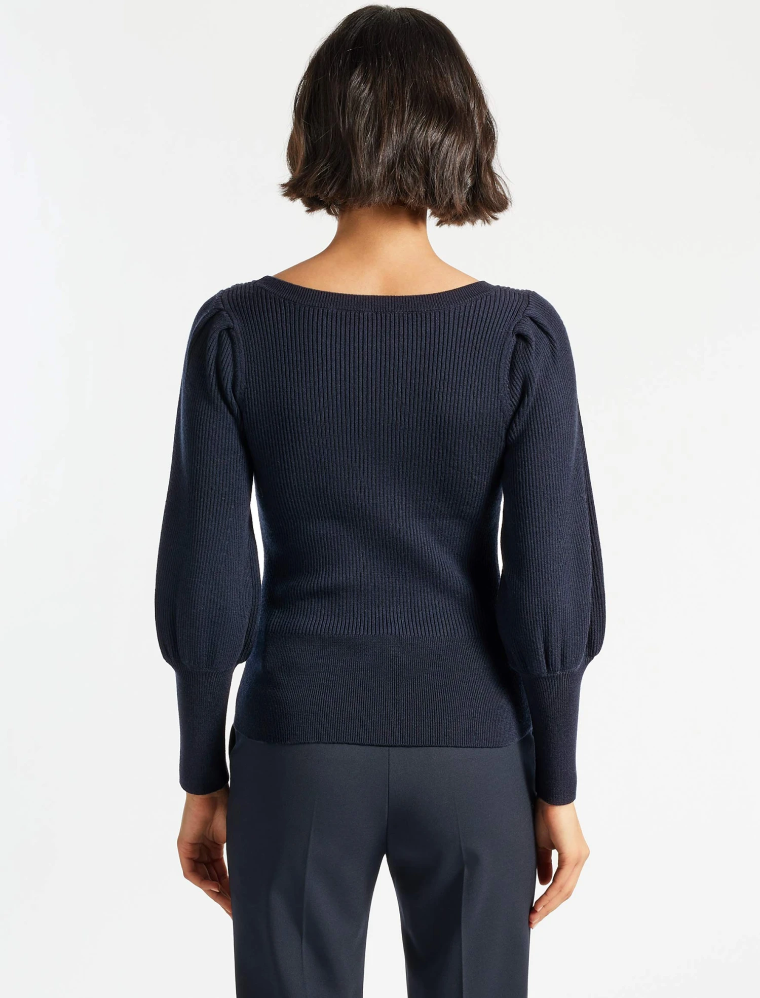 A rework of our bestselling turtleneck Eva top, this new iteration will revitalise your wardrobe staples. Rib-knitted in a super-soft merino-wool blend that’s both machine-washable and pill-proof you’ll feel pulled together even on the busiest of days. The feminine blouson-style sleeves and flattering boat-neck collar ensure it looks work-smart with tailored trousers and elevates wardrobe basics.