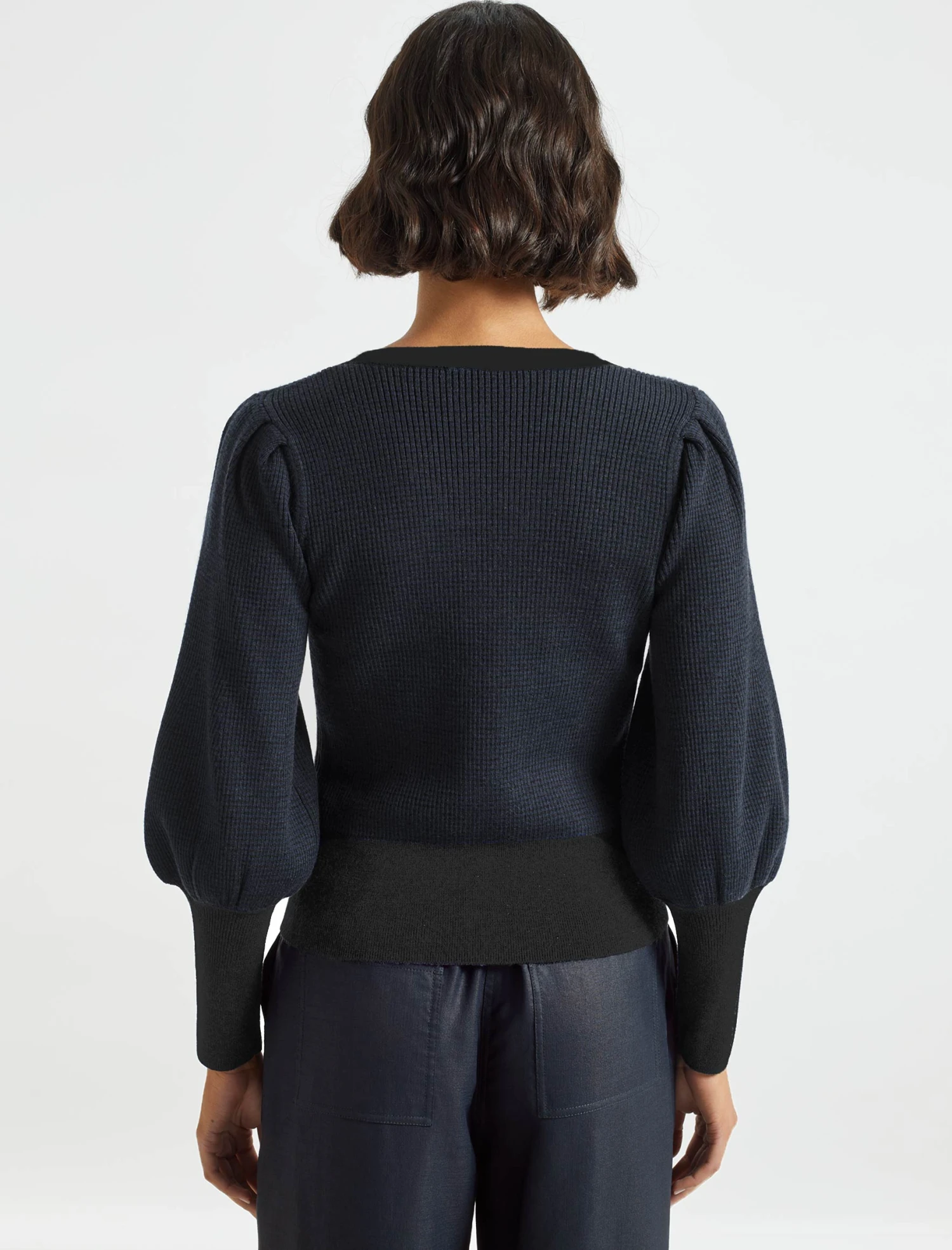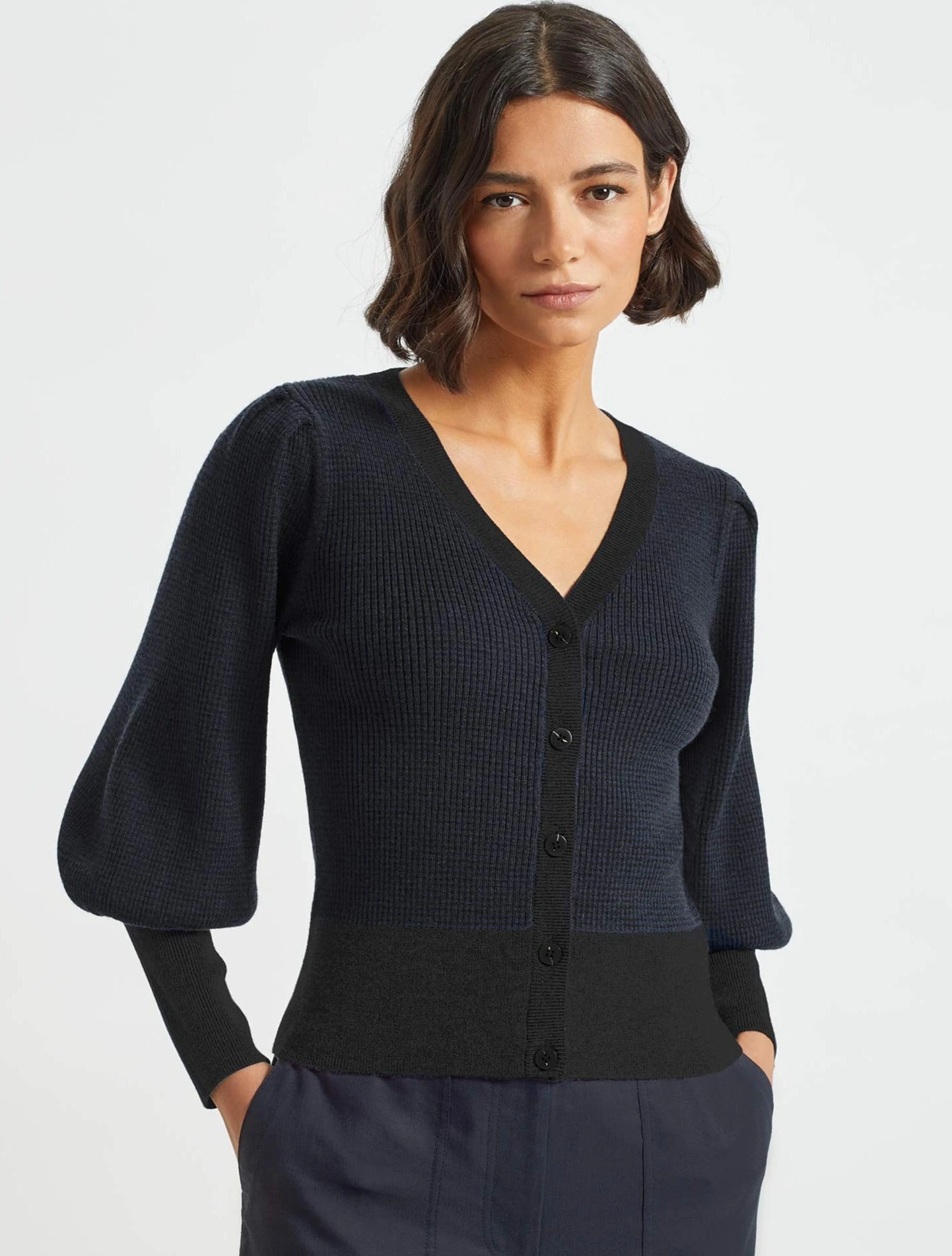 With its charming balloon sleeves, fitted elongated cuffs and prettily gathered shoulders, our Eva cardigan adds a feminine touch to simple silhouettes. Itβs rib-knitted from a sublimely soft merino-wool blend to a figure-flattering fit and is secured with front summarys. The horizontal stripes give it everyday wearability β whether worn solo with a skirt or tailored trousers, or layered up with a T-shirt or poloneck top on chillier days. Machine washable and pill-proof, it will be a wardrobe favourite for years to come.