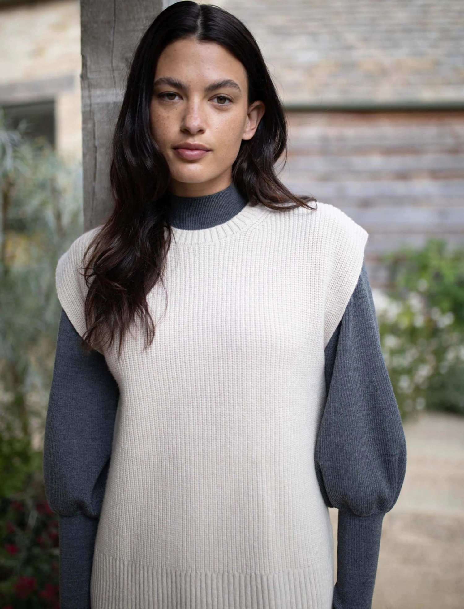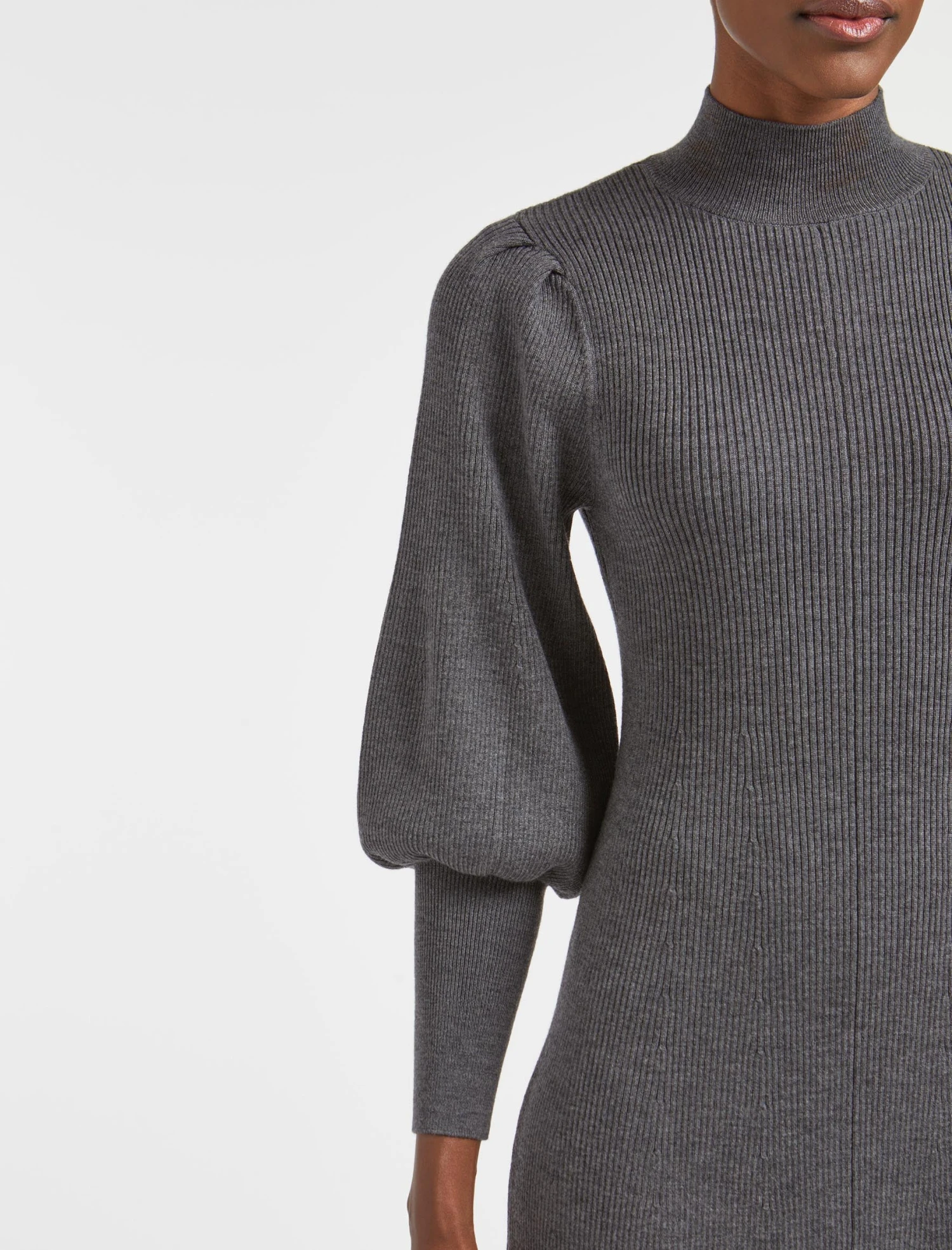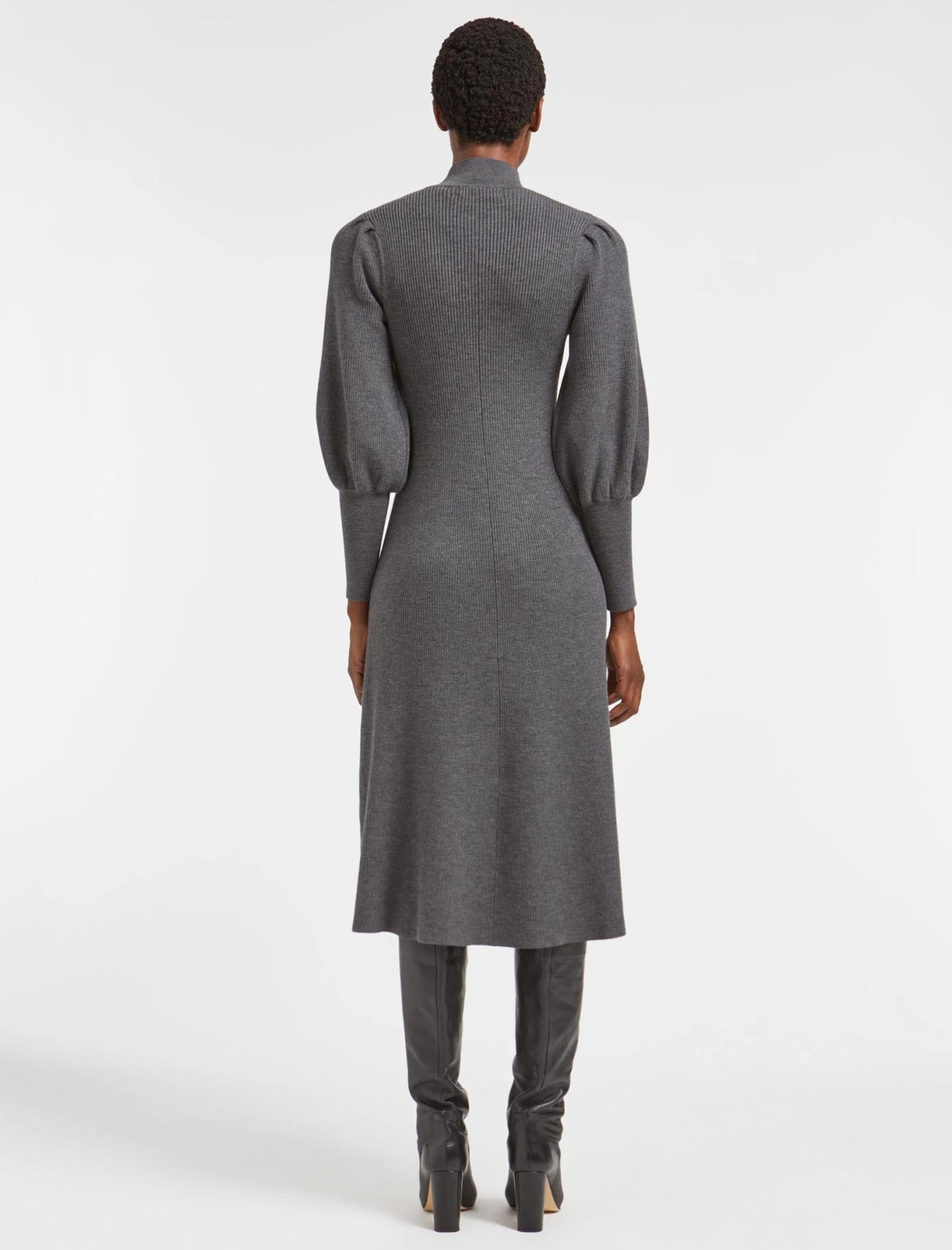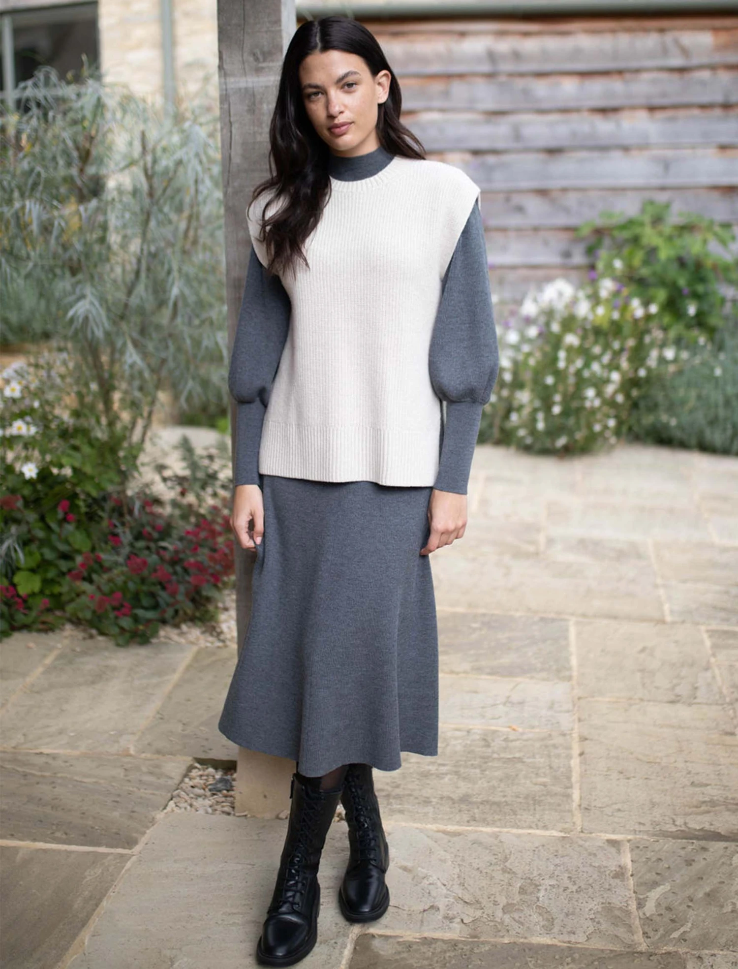 Neatly blending comfort and style, rib-knit dresses are having something of a moment this season. Enter Eva, our hero shape, which is designed in a heavy (non-mulesing) merino-wool blend. This form-fitting style has gentle shaping through the bust and waist before falling into a flared skirt. The funnel neck, blouson sleeves and pleated shoulder detailing add interest to this one-stop daywear staple.