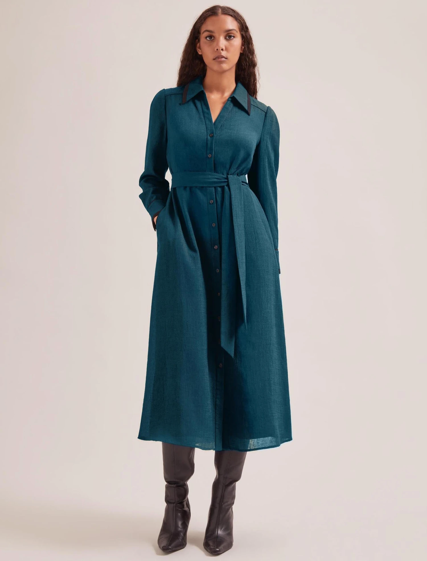 When you need a dress to help you feel pulled together and sharp, Fallon is here for you. This maxi dress is made from Techni Voile, our crease-resistant and machine-washable hero fabric made in Japan. Add to that the elasticated back waist, contrast trims, detachable sash and handy pockets and you have a failsafe workwear option you’ll return to time and again.