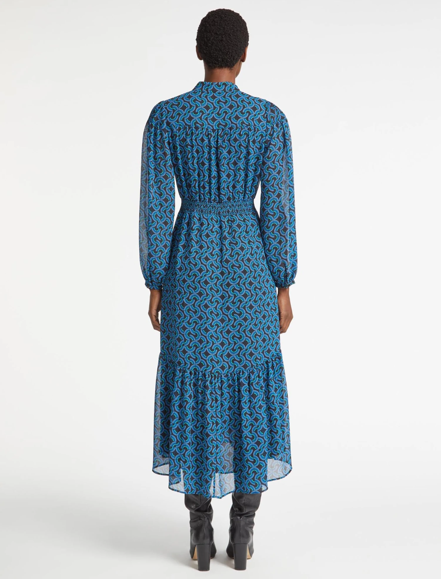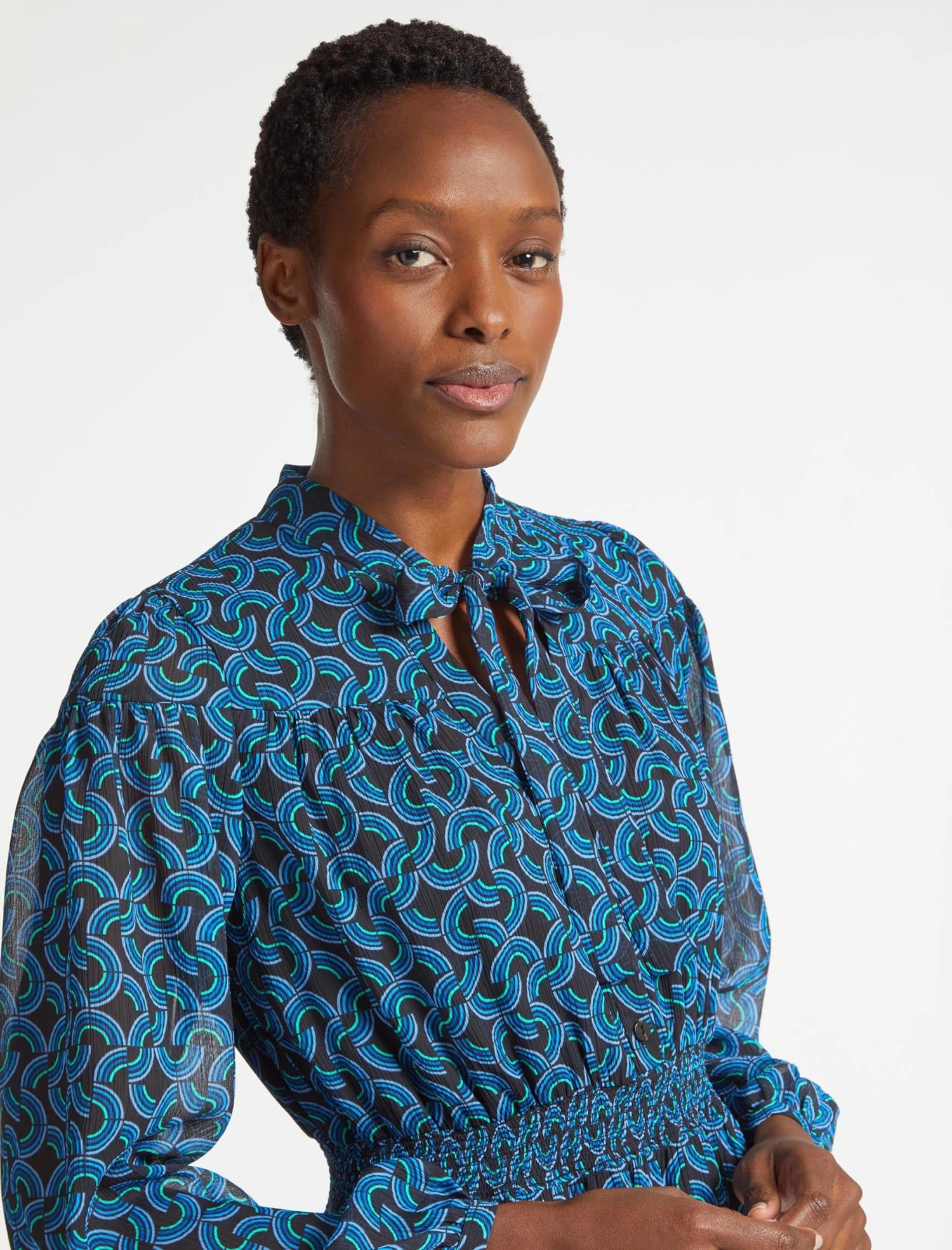 How to sum up Francesca in one word? Effortless. Designed in a machine-washable, recycled georgette with our graphic geo print, it’s crease-resistant and easy to wear, making it ideal for working days and busy autumn weekends. Add to that the shirred waist, loose necktie, midi length and pockets, and you have a fail-safe style that you’ll return to again and again.