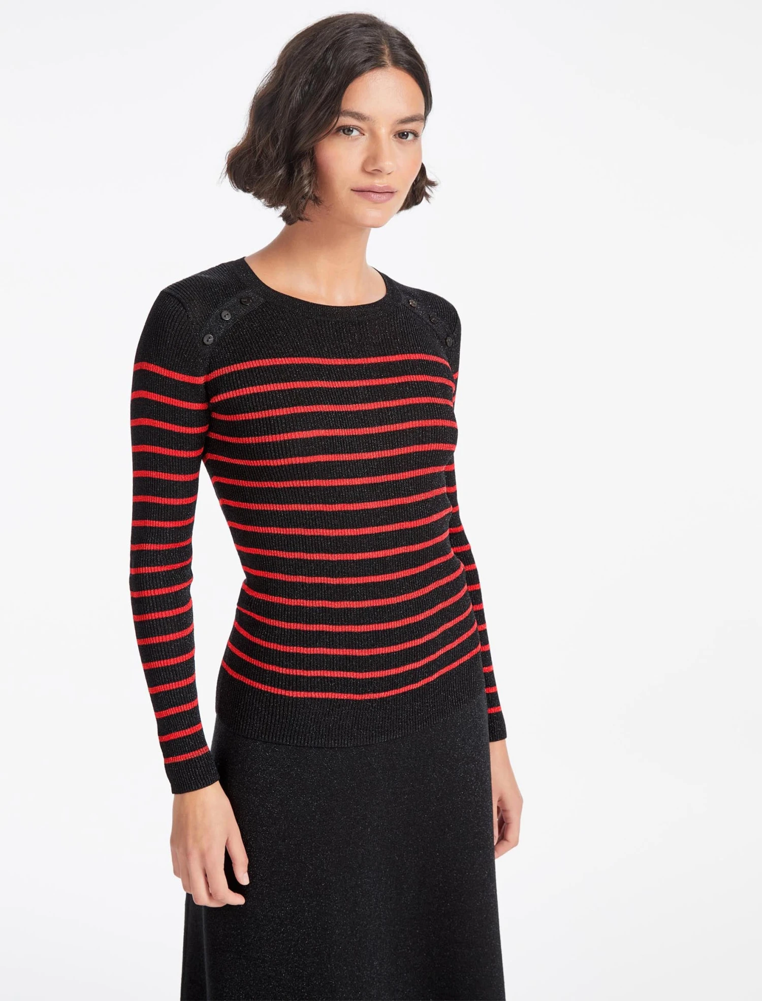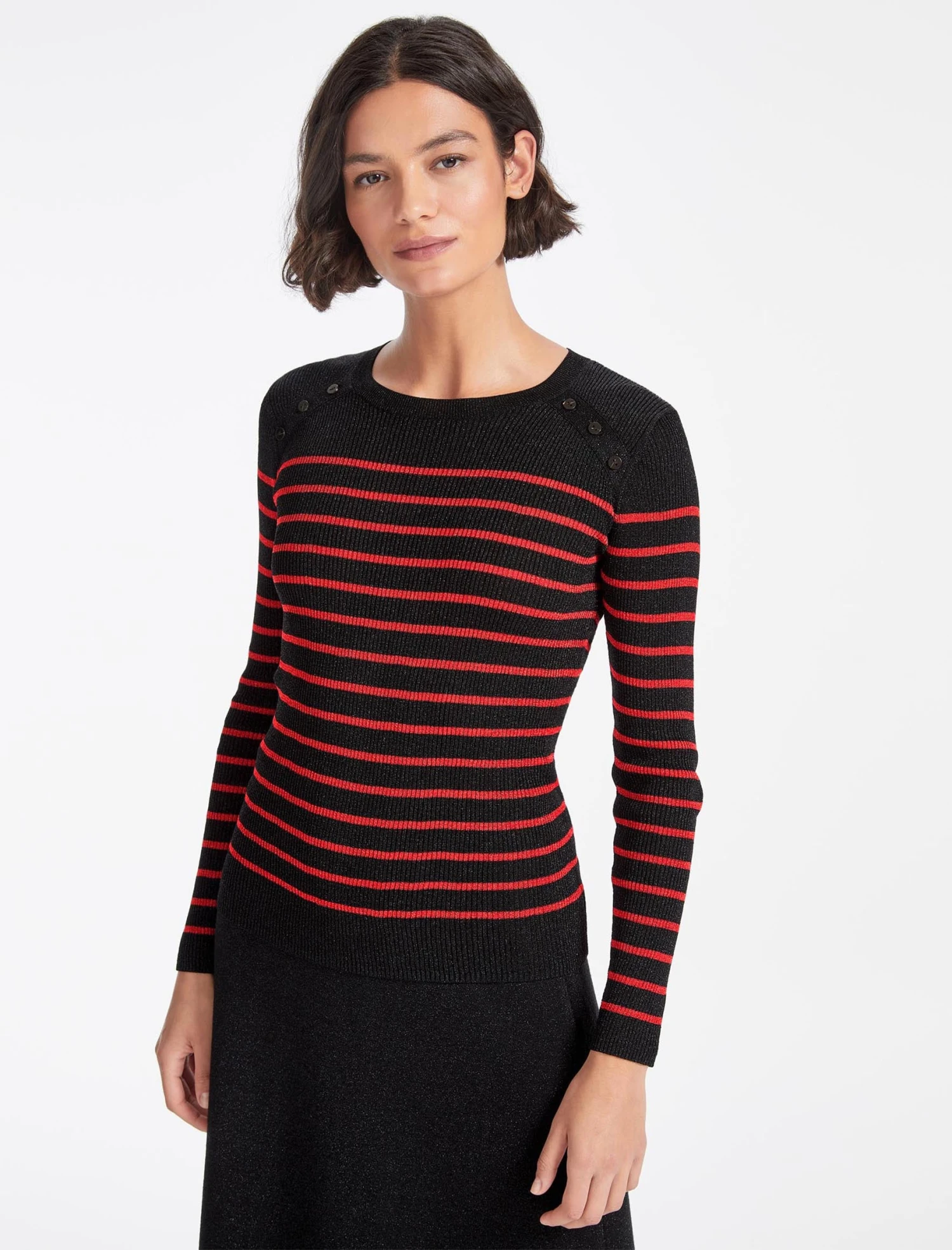 A sparkly twist on a classic Breton jumper, our on-trend striped Frieda design comes 3 in rich jewel colourways. The ultimate throw-on-and-party top, it will instantly elevate just about anything in your winter wardrobe – from a jean to a simple skirt or tailored trouser.