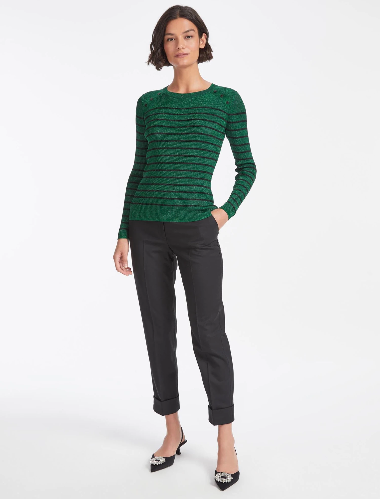 A sparkly twist on a classic Breton jumper, our on-trend striped Frieda design comes 3 in rich jewel colourways. The ultimate throw-on-and-party top, it will instantly elevate just about anything in your winter wardrobe – from a jean to a simple skirt or tailored trouser.
