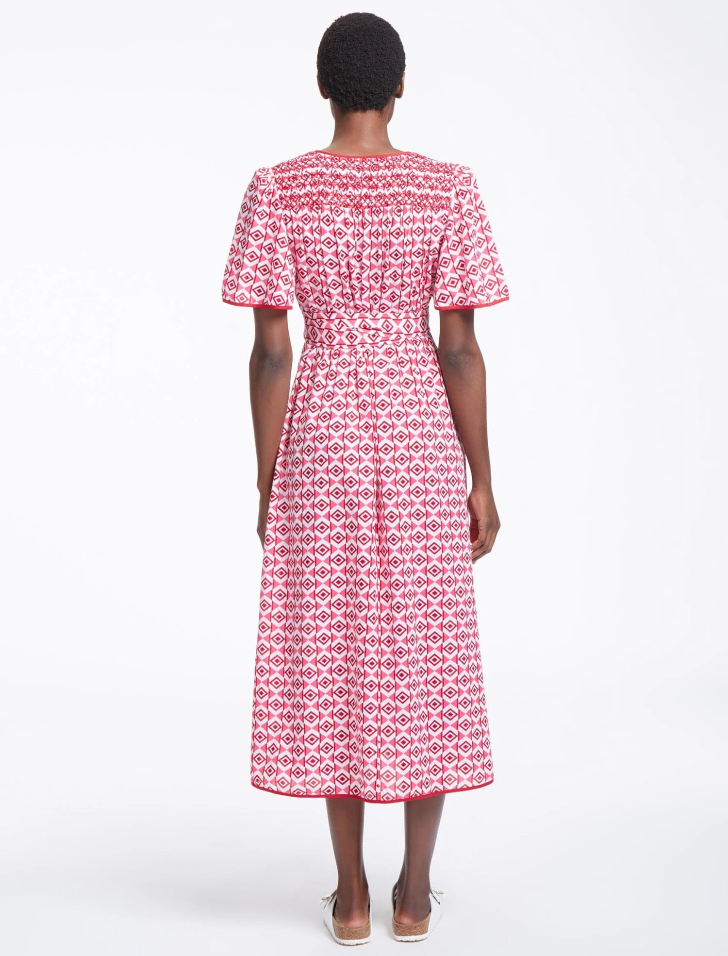 The spring/summer months call for throw-on-and-go dresses that can navigate garden parties, fundraising lunches and board meetings. Enter, then, Gina. Designed in a lightweight cotton blend in our graphic geo print, this is an effortlessly wearable dress thanks to its simple design and fuss-free detailing. The fixed wraparound sash can be tied to cinch the waist as you like, and the side slits enhance its easy elegance.