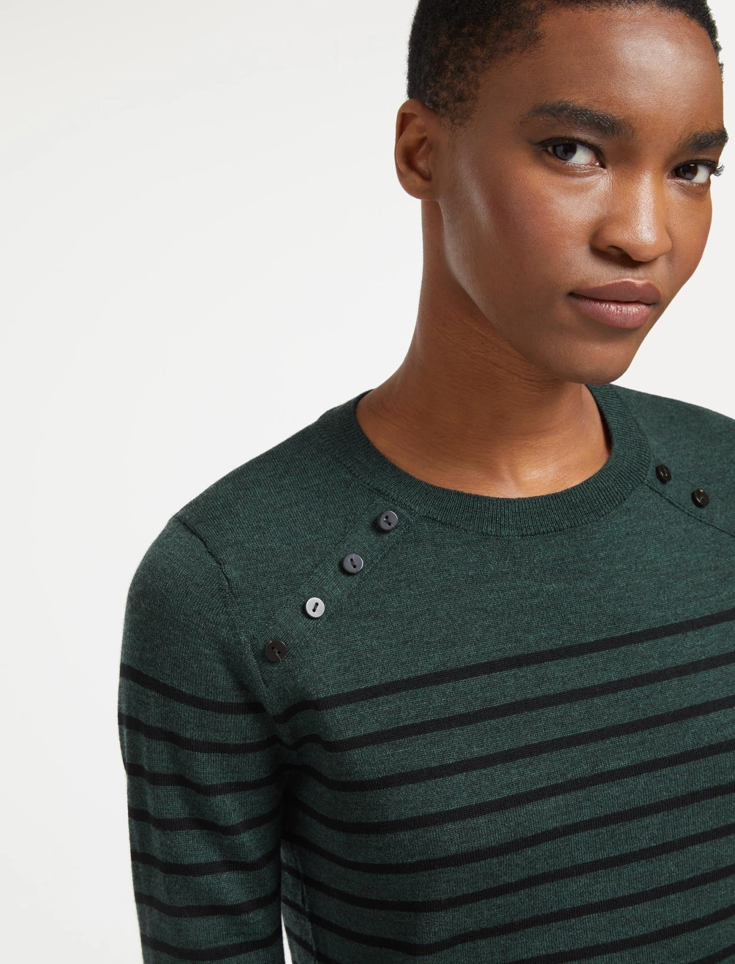 The Breton top is undeniably one of the most loved wardrobe icons; our crewneck Hailey jumper offers a fresh take on the classic style. Designed in a fine merino knit, its lightweight handle ensures it works year-round – whether you’re throwing it on with a simple jean and trainer or bringing a modern edge to your classic blazer and tailored trouser.