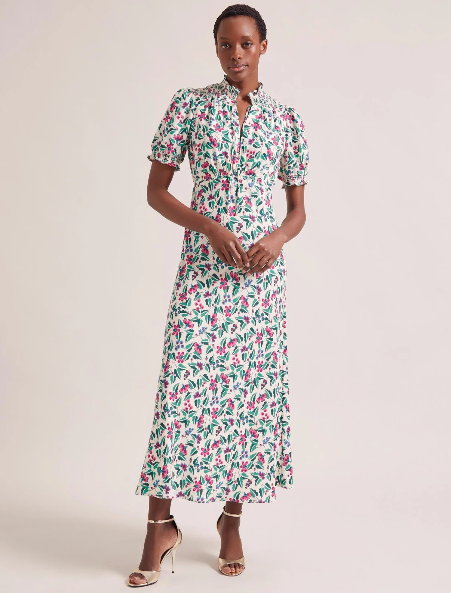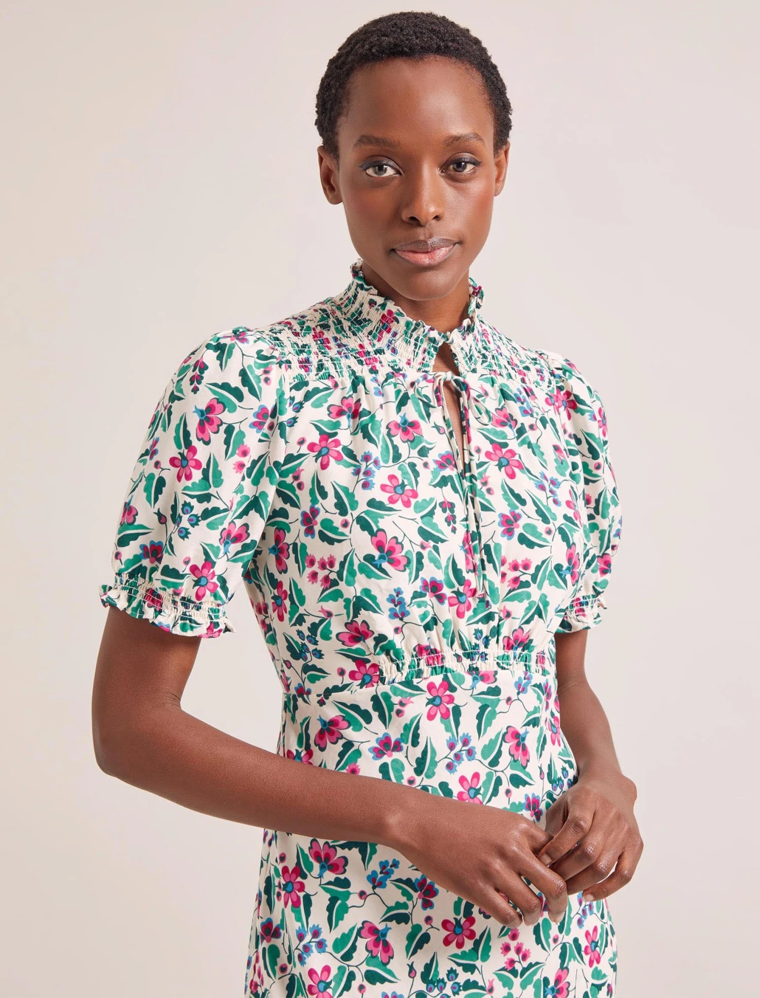 With its figure-flattering bias-cut silhouette, it’s little surprise our Irina dress has been a sell-out hit season after season. Back for Spring/Summer 24 in a fun, flamboyant floral with a subtle leopard jacquard, its winning formula of pretty shirring, bias-cut skirt and tie-neck remain. What’s new is the robust washable fabric that won’t crease making it ideal for travel and perfect for a far-flung party. A standout style, Irina is perfect for Ascot, summer garden parties and weddings and celebrations!
