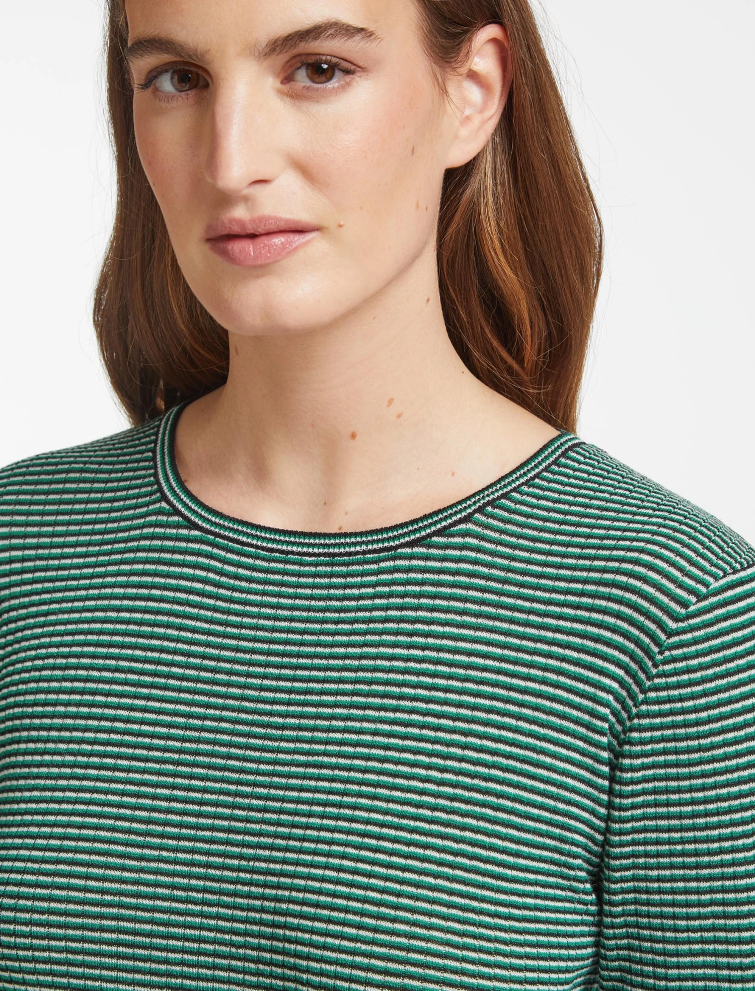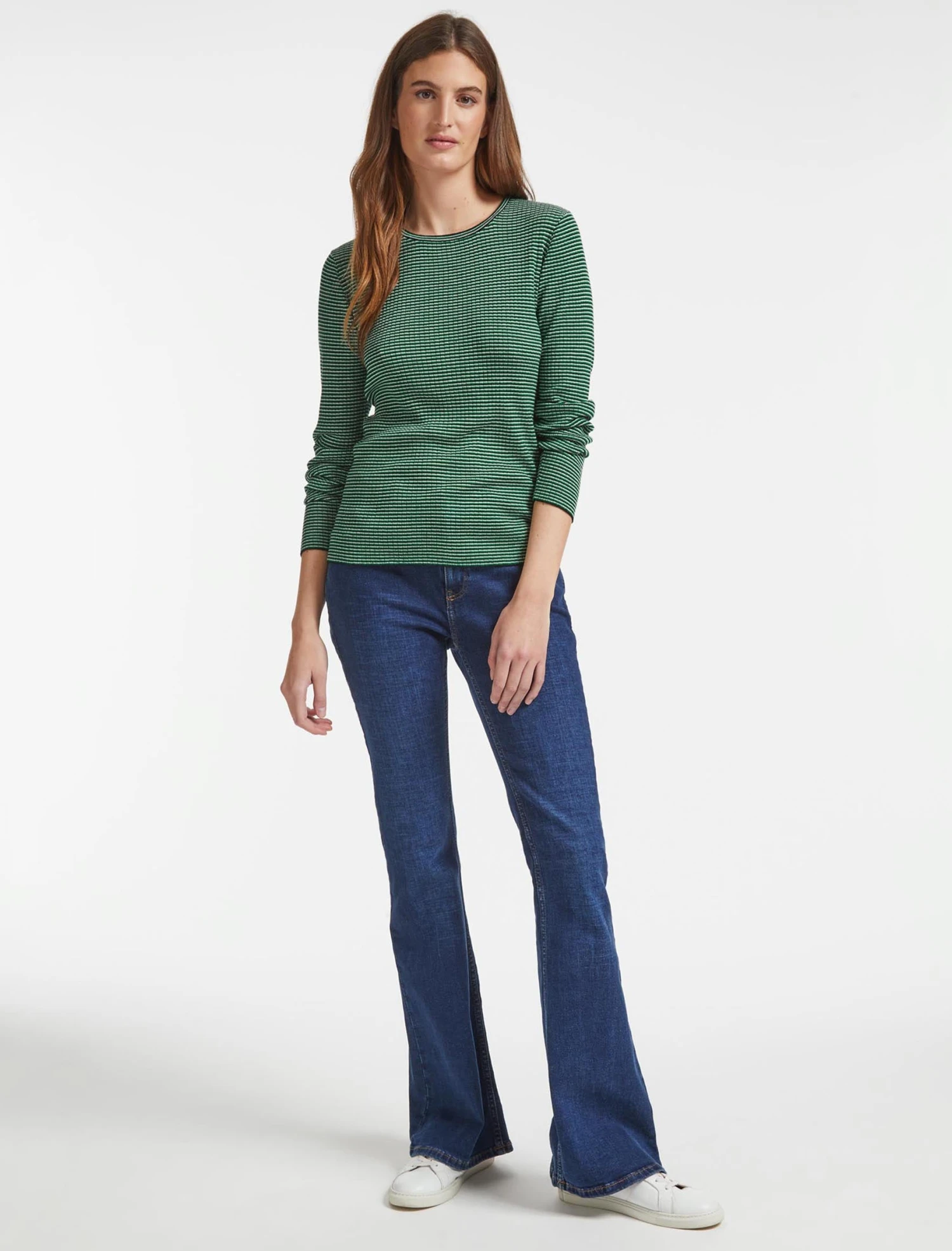 One of our signature crewneck styles, Jackson is a lightweight merino knit with year-round appeal. The clever combination of fine horizontal stripes and a vertical rib ensures it is universally flattering. Ideal for layering under jackets and blazers with a tailored trouser or jean, you’ll be reaching for it time and again.