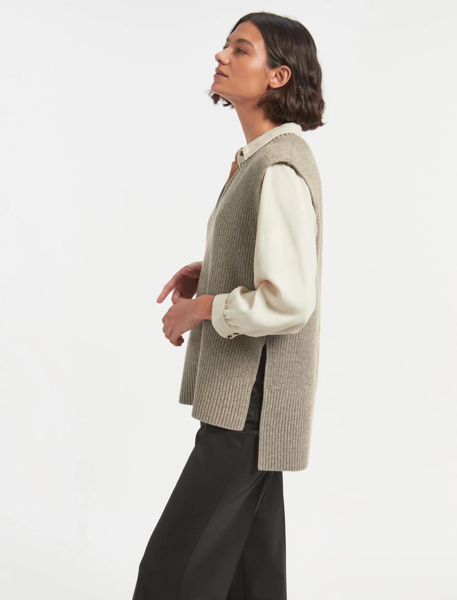 Janice Wool V Neck Sleeveless Jumper – Taupe