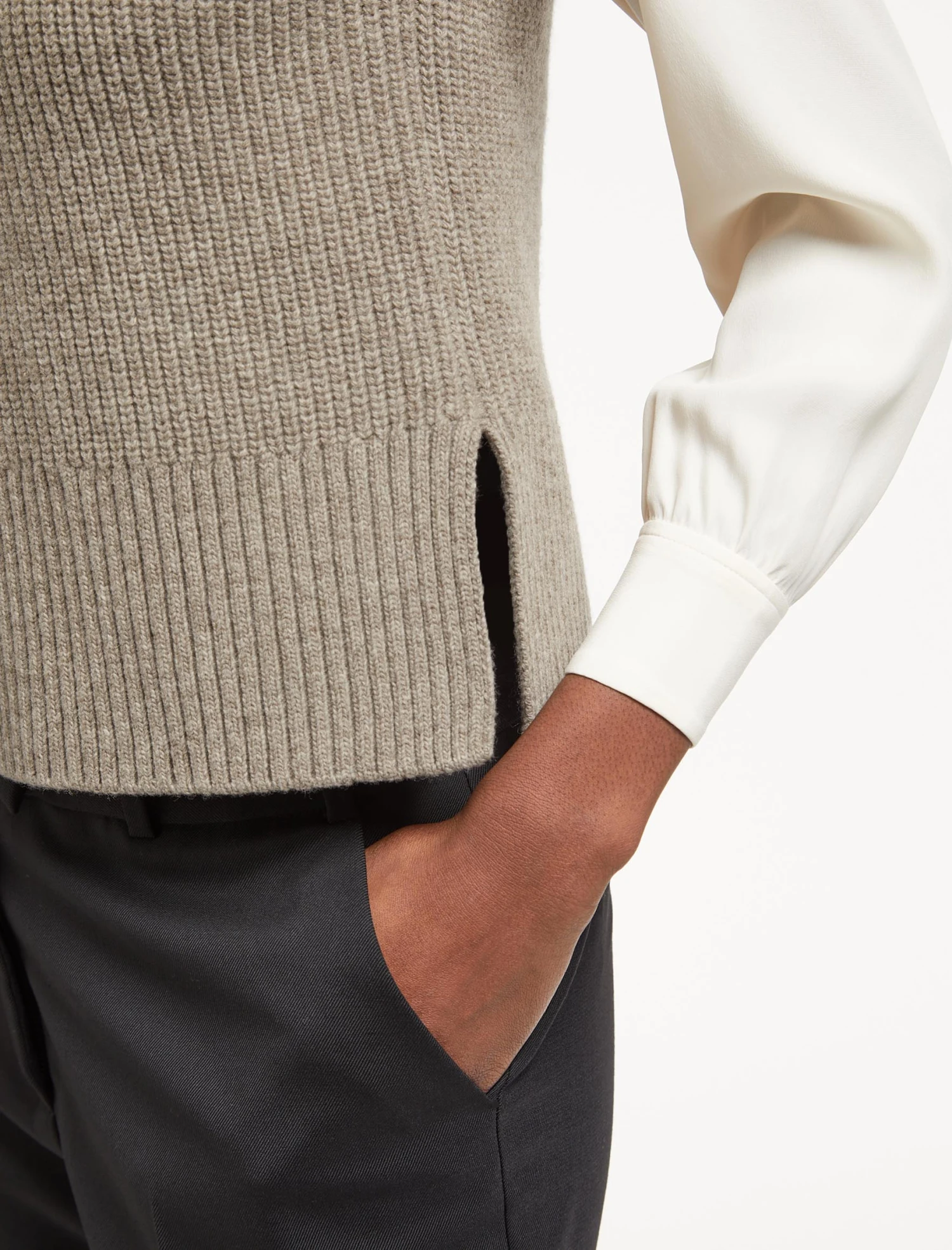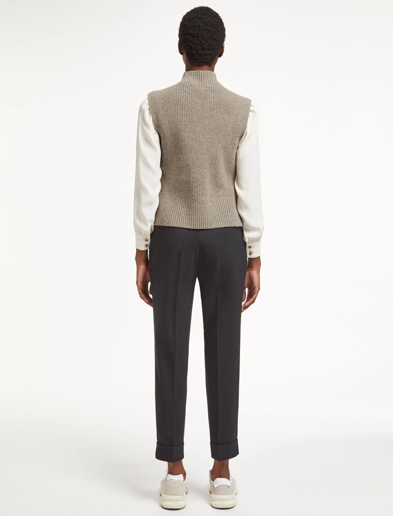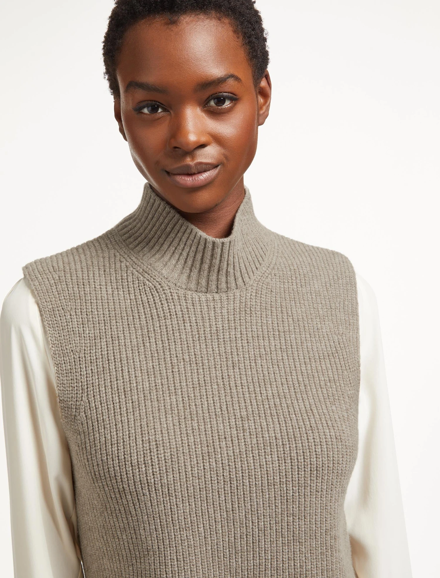 Pieces that neatly combine comfort, versatility and style are essential this winter. Our sleeveless Janie jumper is just the ticket. A brilliant layering piece, the fully fashioned armholes ensure it sits snugly over any sleeve – whether a tailored shirt or blouson blouse – while the dropped hem and side slits mean it effortlessly slips over voluminous dresses or skirts, as well as a tee and jean or shirt and tailored trouser. Hello, Little Miss Versatile!