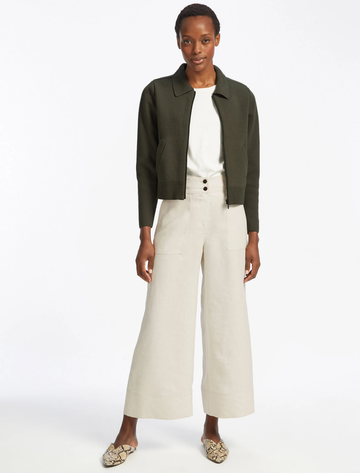 Inspired by a collared bomber design, our Jimmy knit jacket will be one of the hardest-working summer cover-ups in your wardrobe. Designed in a khaki green cotton blend, shrug it on with our utility style Techni-Linen collection – cue our Hayden and Tate wide-legged trouser or Lyla skirt. A versatile, year-round staple that’s the perfect alternative to a jacket – we’ll take one in both colours, please.