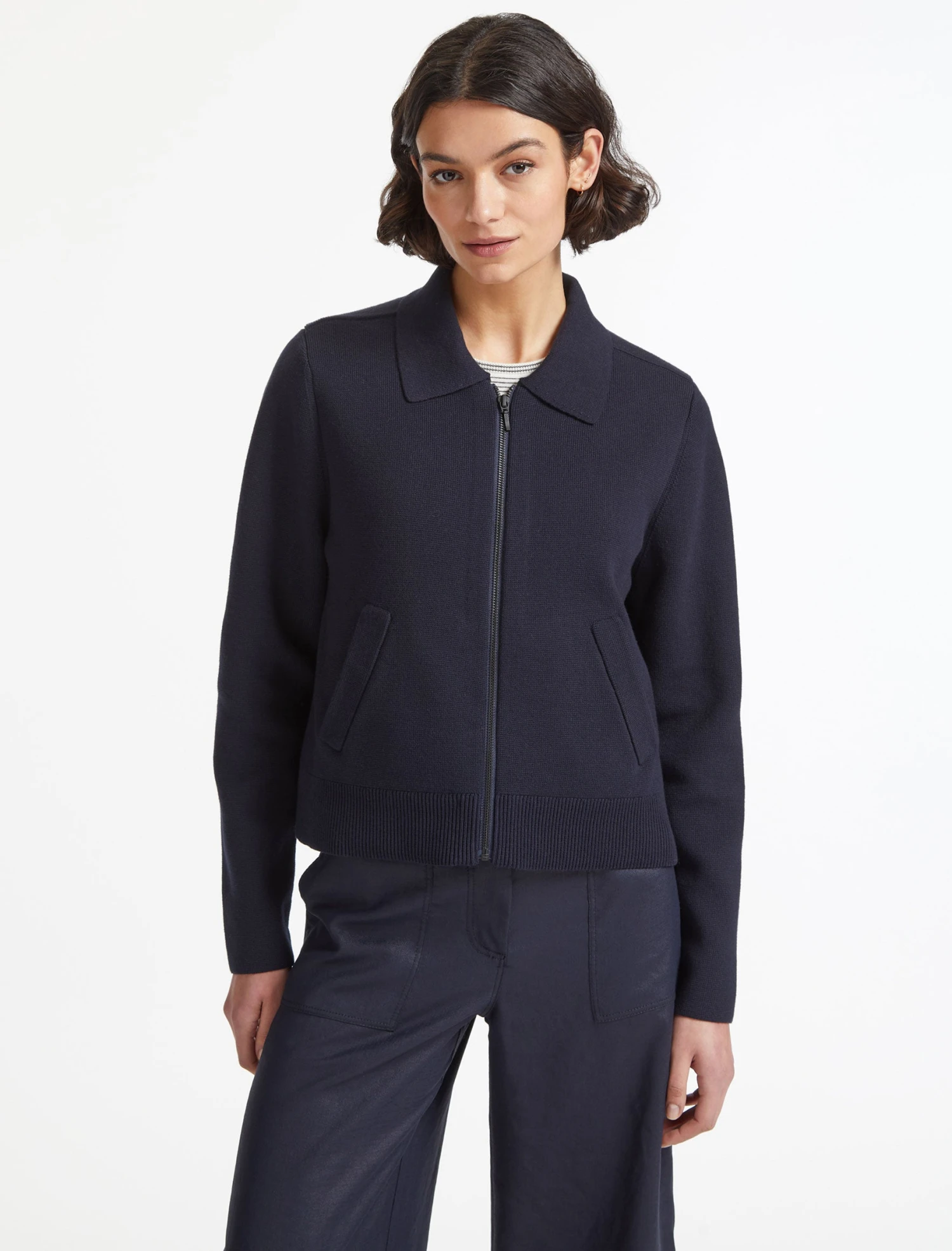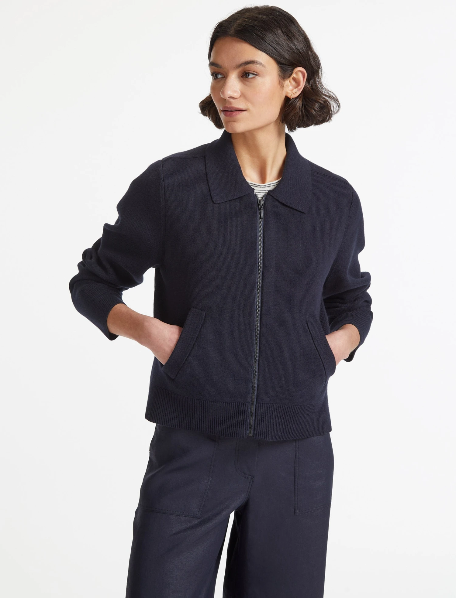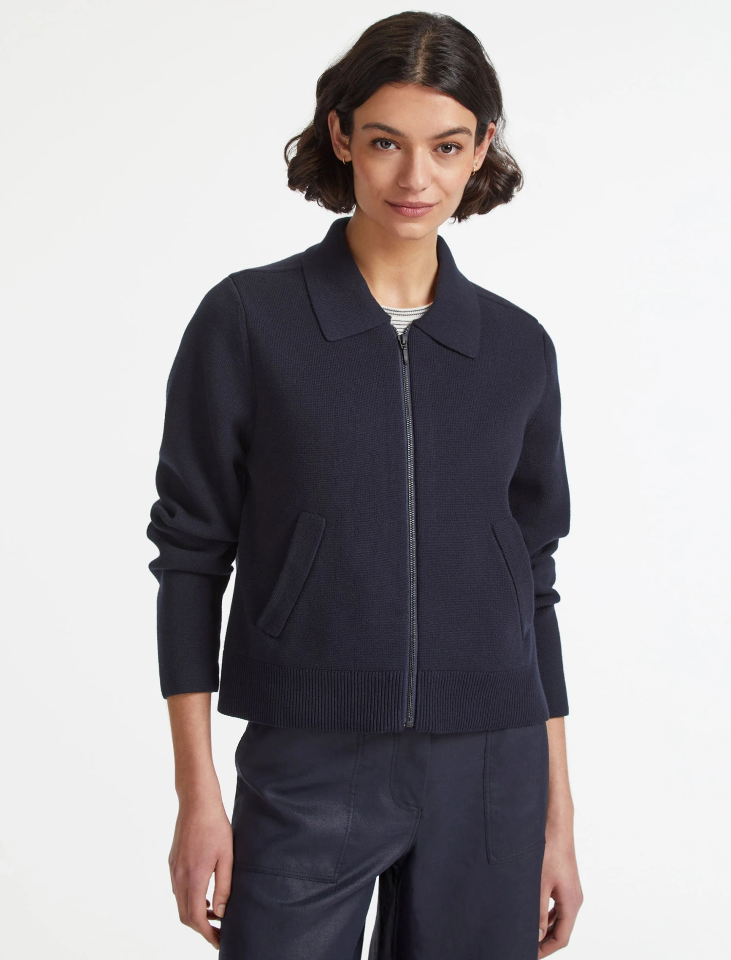 Inspired by a collared bomber design, our Jimmy knit jacket will be one of the hardest-working summer cover-ups in your wardrobe. Designed in a navy blue cotton blend, shrug it on with our utility style Techni-Linen collection – cue our Hayden and Tate wide-legged trouser or Lyla skirt. A versatile, year-round staple that’s the perfect alternative to a jacket – we’ll take one in both colours, please.