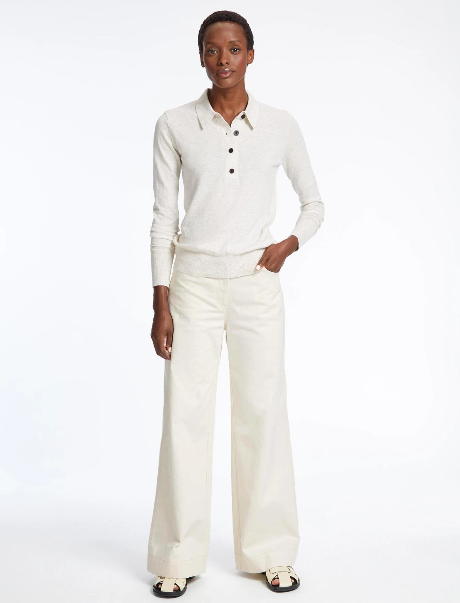 The Josie collared jumper is a Cefinn take on a timeless classic. Cut from a cotton-and-merino blend, this trend-led knit has a lighter, summery feel, making it the ideal layering piece under a blazer on cooler days, or over a T-shirt and our Sierra skirt when you’re working from home and need to look sharp.