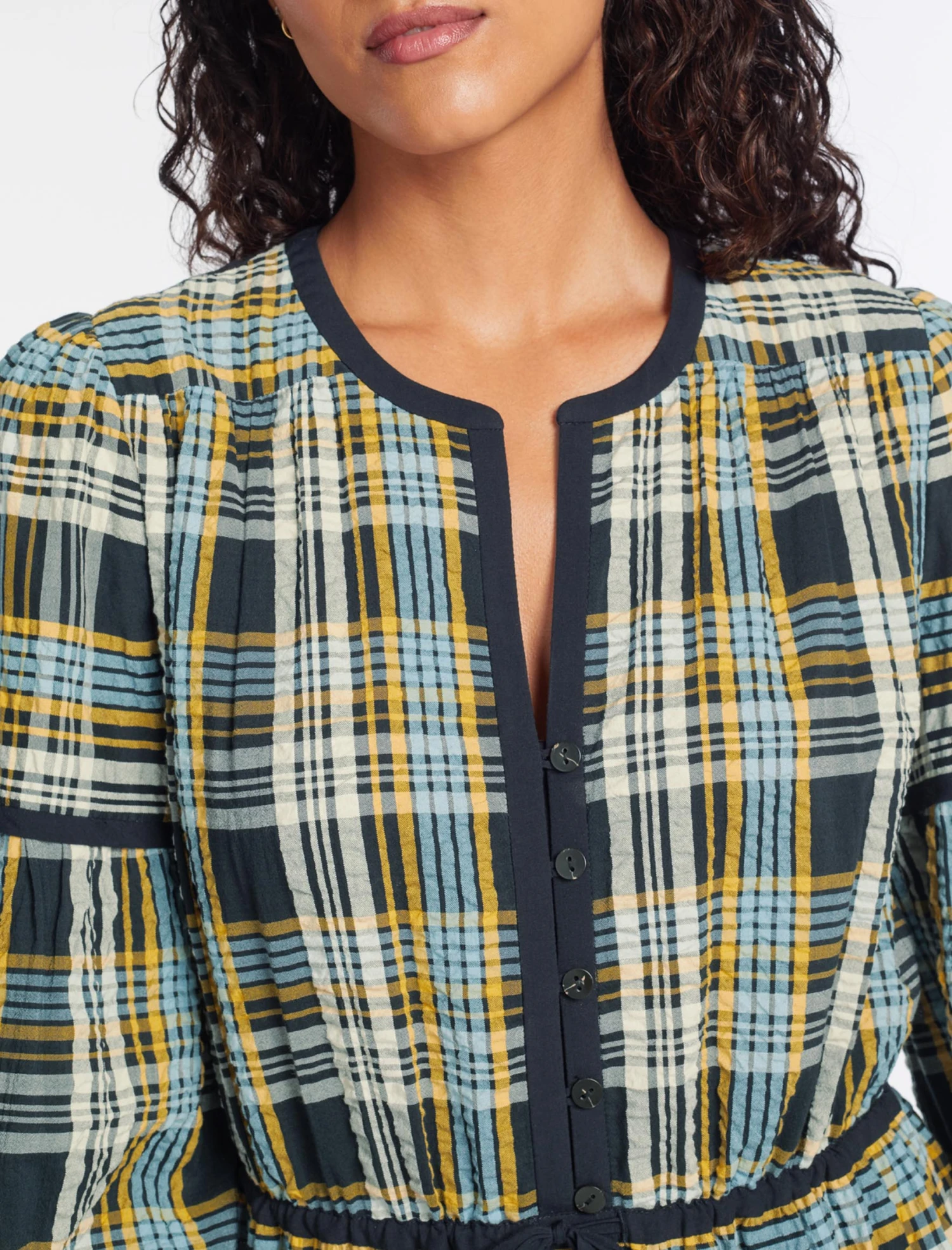 Nodding to classic Scandi styles, our navy and yellow check Katie dress has blouson sleeves, a drawstring waist and tiered skirt that lend it a sense of ease and nonchalance. A dream trans-seasonal dress for runaround days, it’s cut from organic cotton, meaning it not only feels good to wear but also feels good for the planet. Win-win.