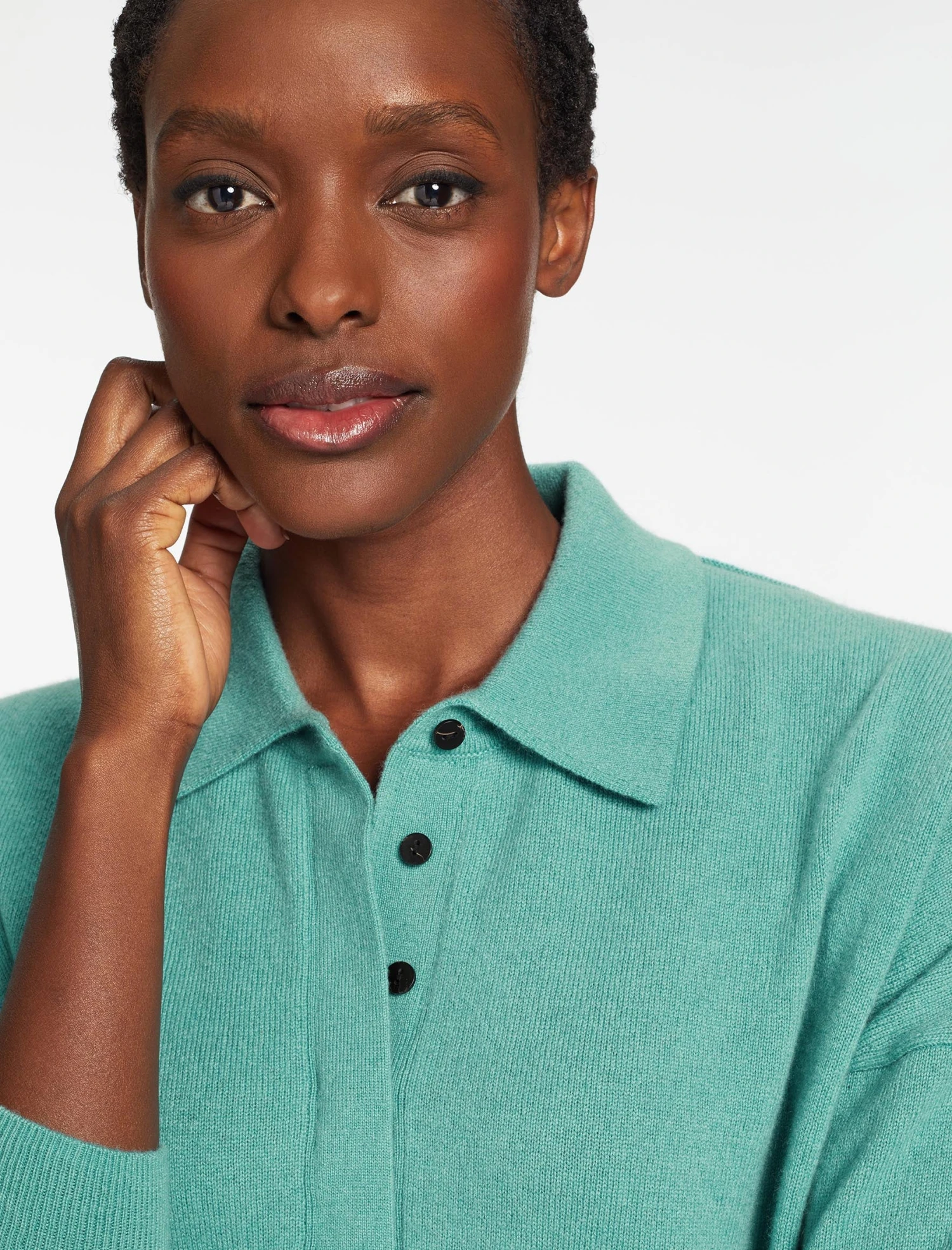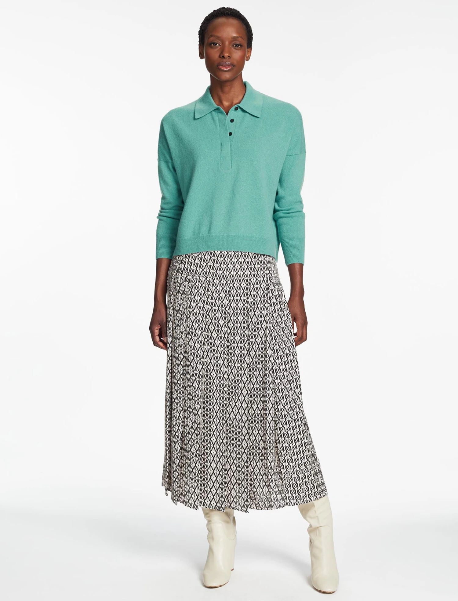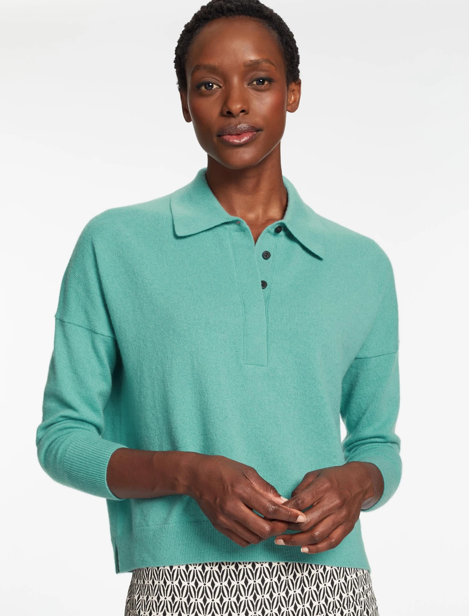 The beauty of cashmere is that it is light enough to take you into spring. Kelly’s loose, boxy shape and lofty texture keep it airy and breathable. The concealed placket and collar give it a smart edge that works well with skirts or a tailored trouser.