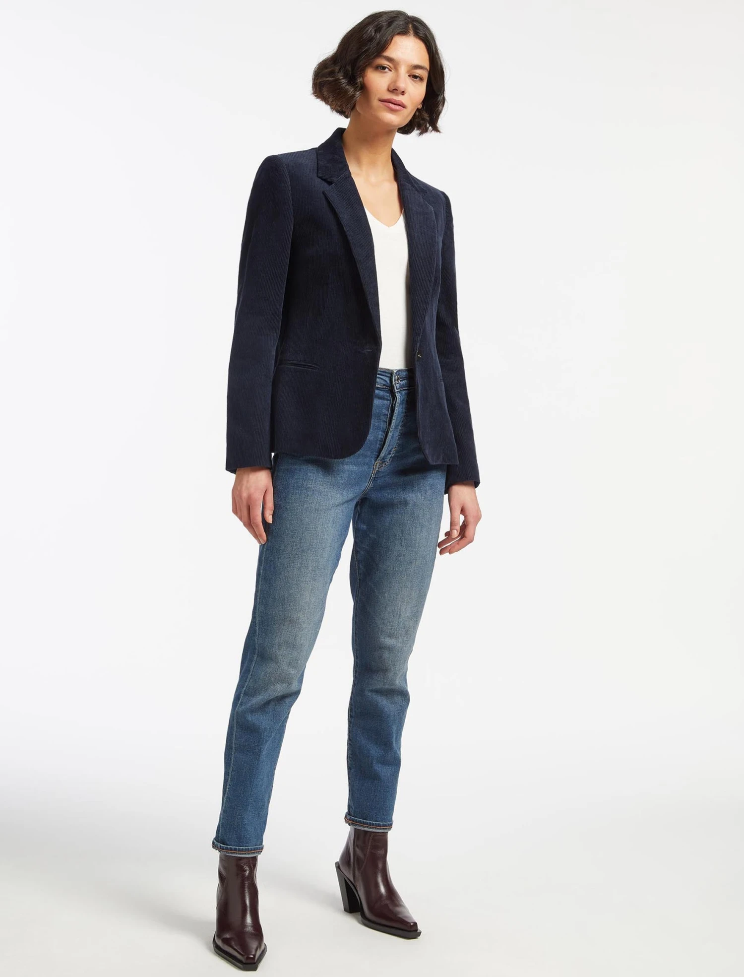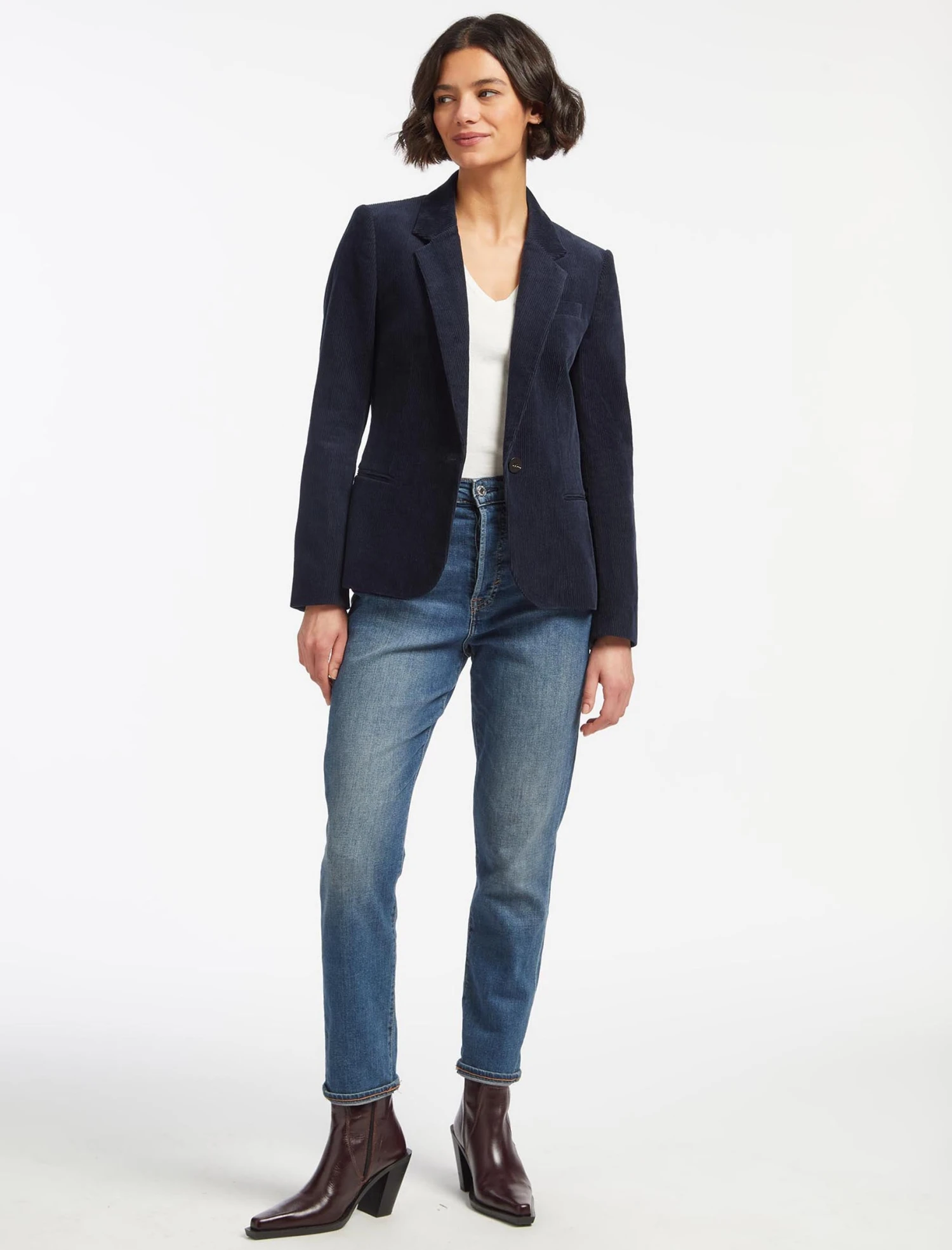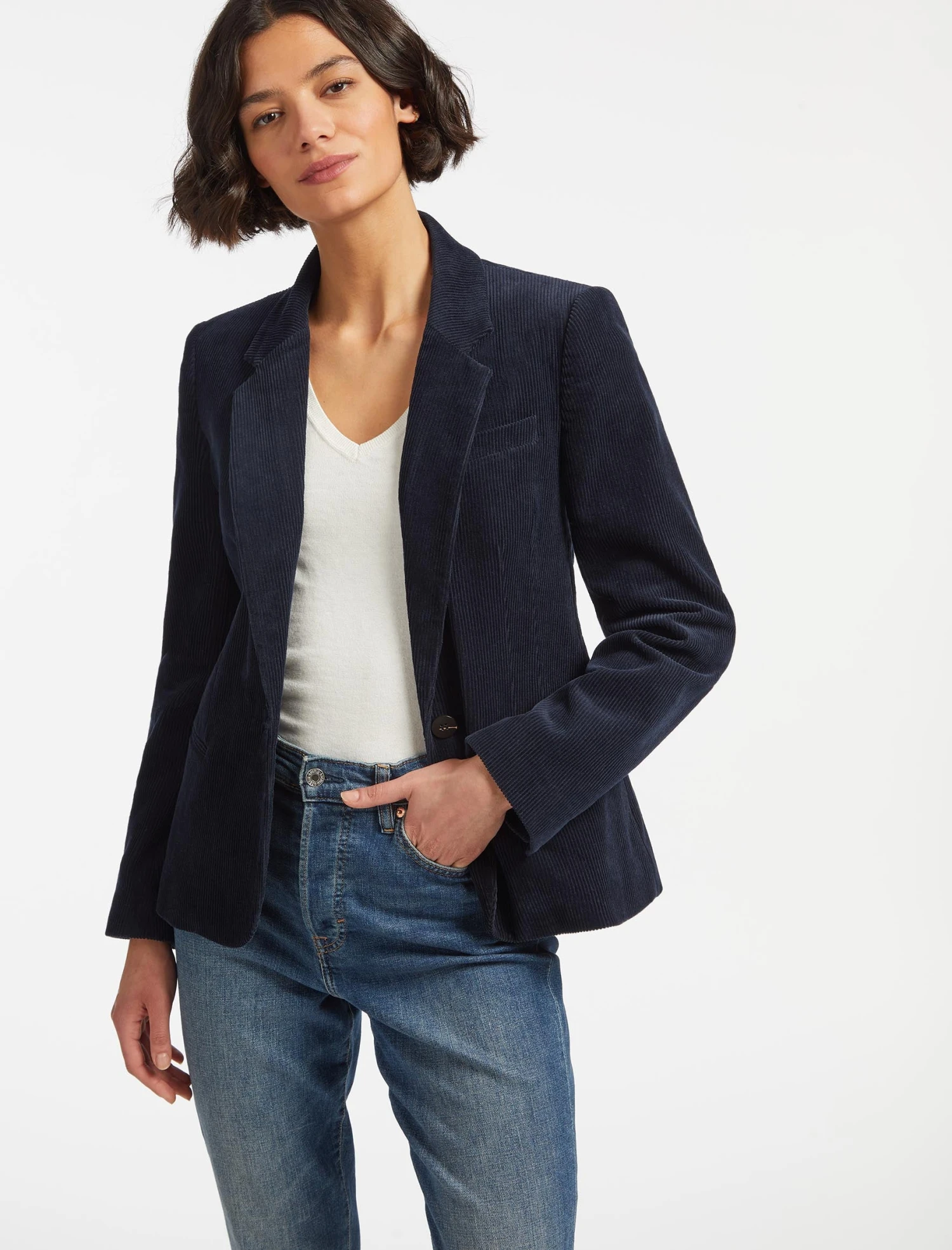 Our new Leo blazer is the ideal trans-seasonal cover-up. A shorter version of our classic Jamie blazer, the machine-washable wide-wale corduroy gives it a smart-casual spin. For a more relaxed take on suiting, match it with the Tatum trouser and our Freida top.