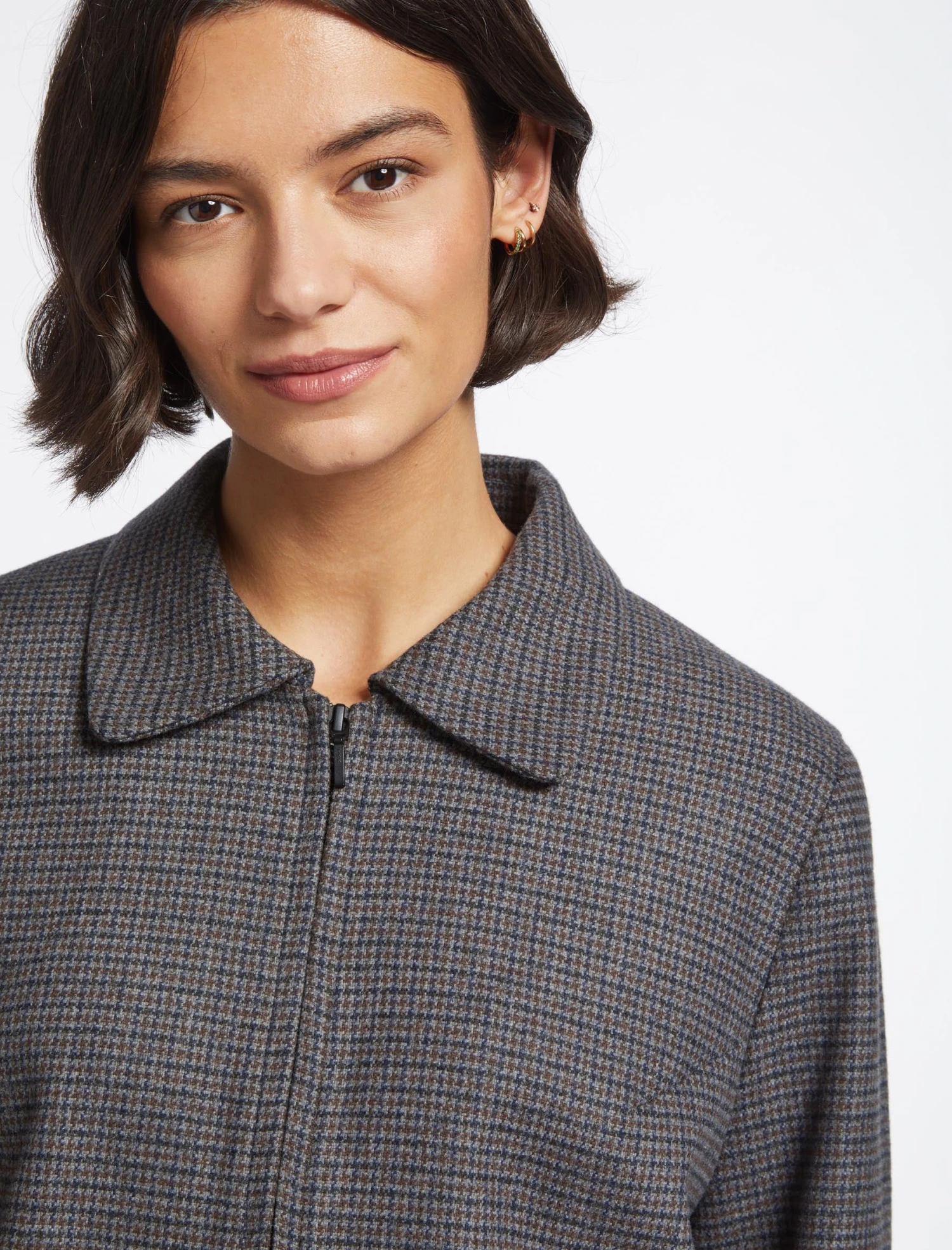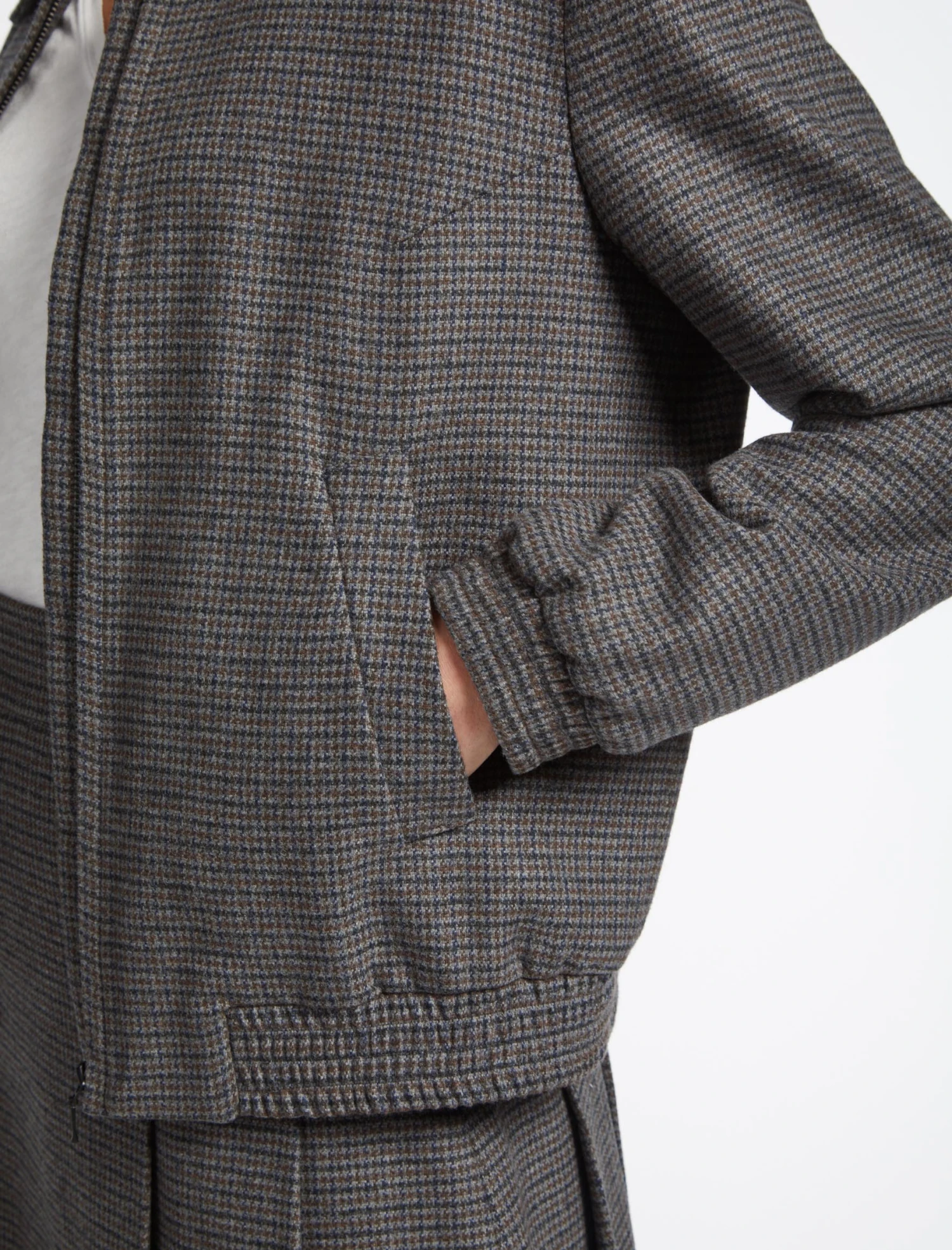 With bomber jackets still very much in the fashion spotlight, Lexi neatly straddles the casual and sophisticated style camps. Featuring the bomber’s trademark elasticated ribbed hem and cuffs, cropped length and side pockets, the sharp collar gives it a smarter edge. The check wool blend material has a soft, lightweight handle for spring, so you can shrug it on with denim or a tailored trouser such as Terence.