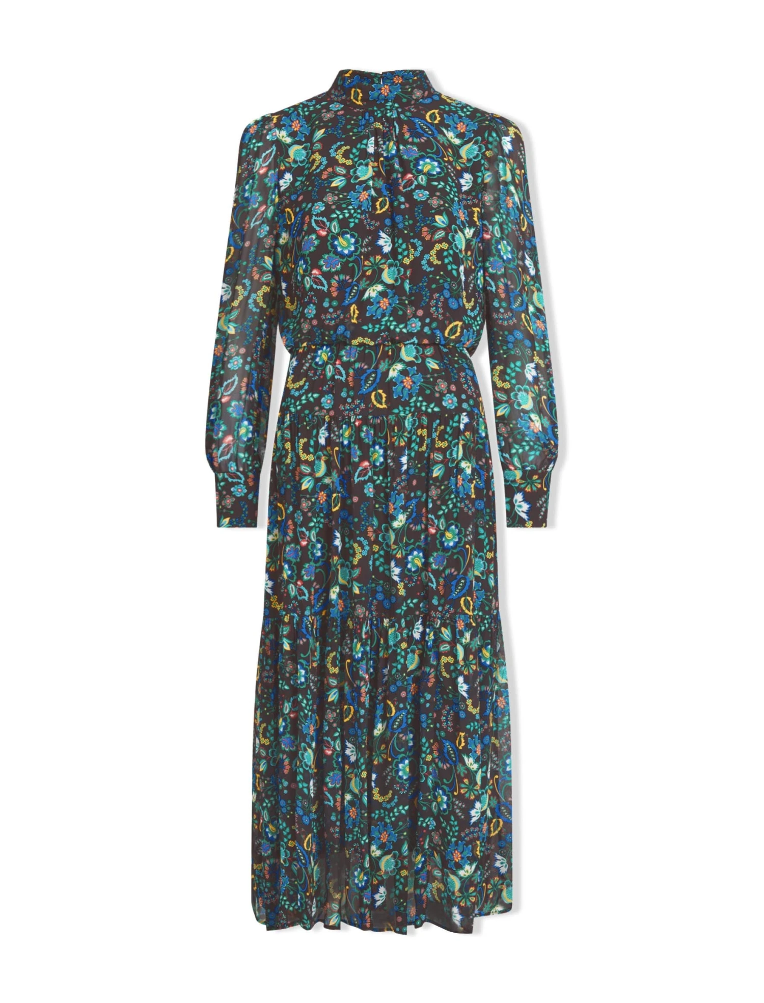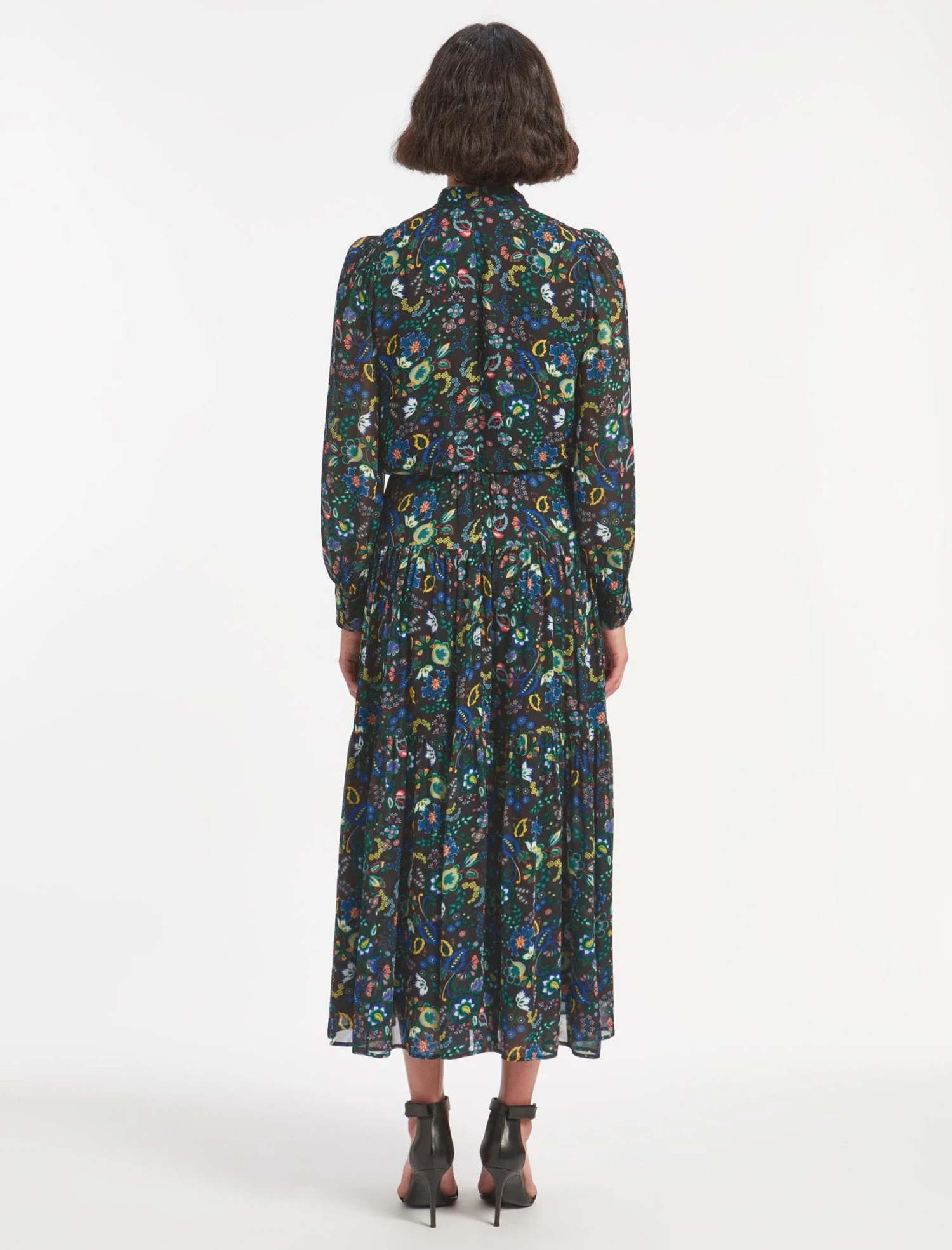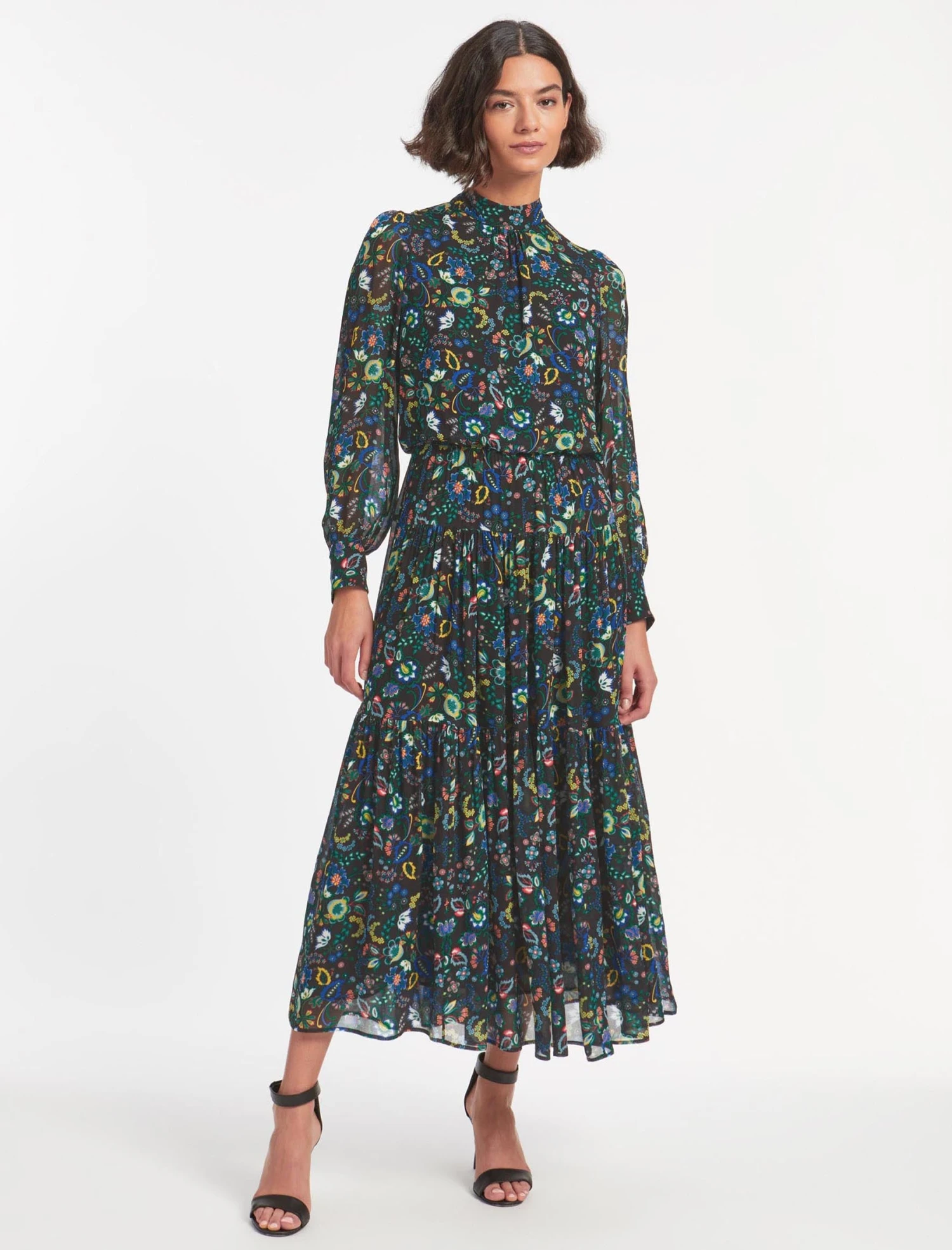 Designed exclusively in house, our large floral prints will instantly transport you to summery meadows. Fresh, feminine and flirty, our new Lorni dress is cut from a viscose-georgette for an elegant finish. It has a high funnel neck with a back summary and zip fastening, long, cuffed blouson sleeves, an elasticated back waist and a pretty tiered skirt. Consider it your event season plus one.