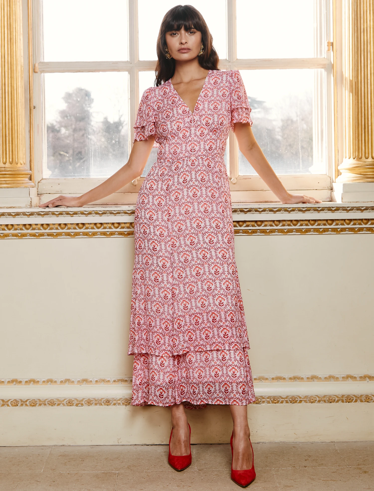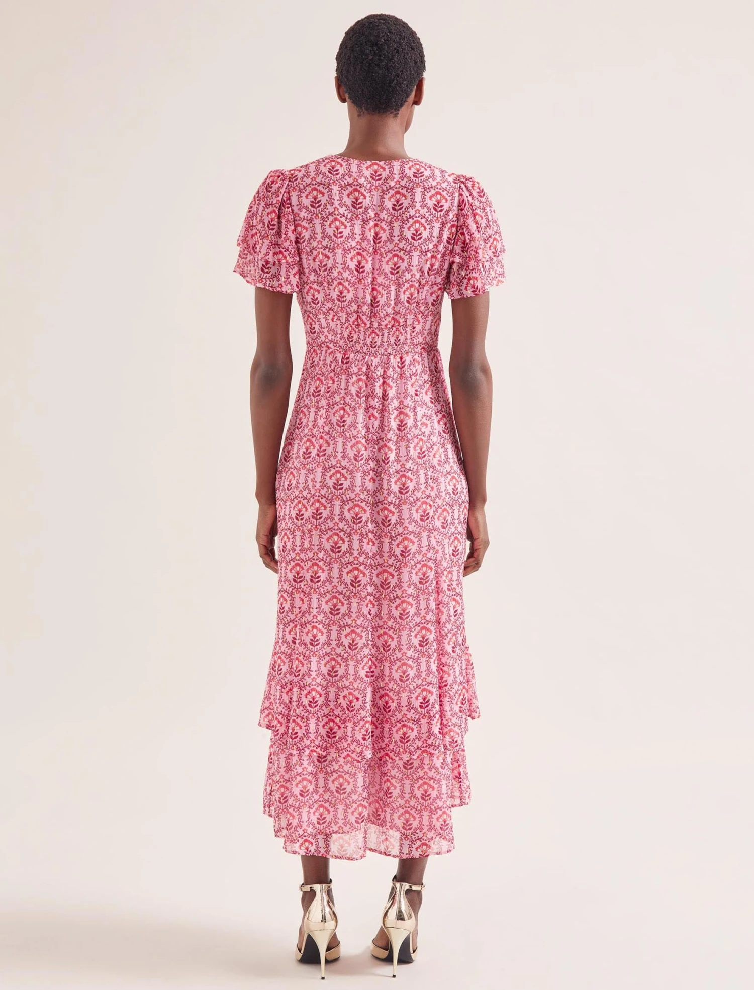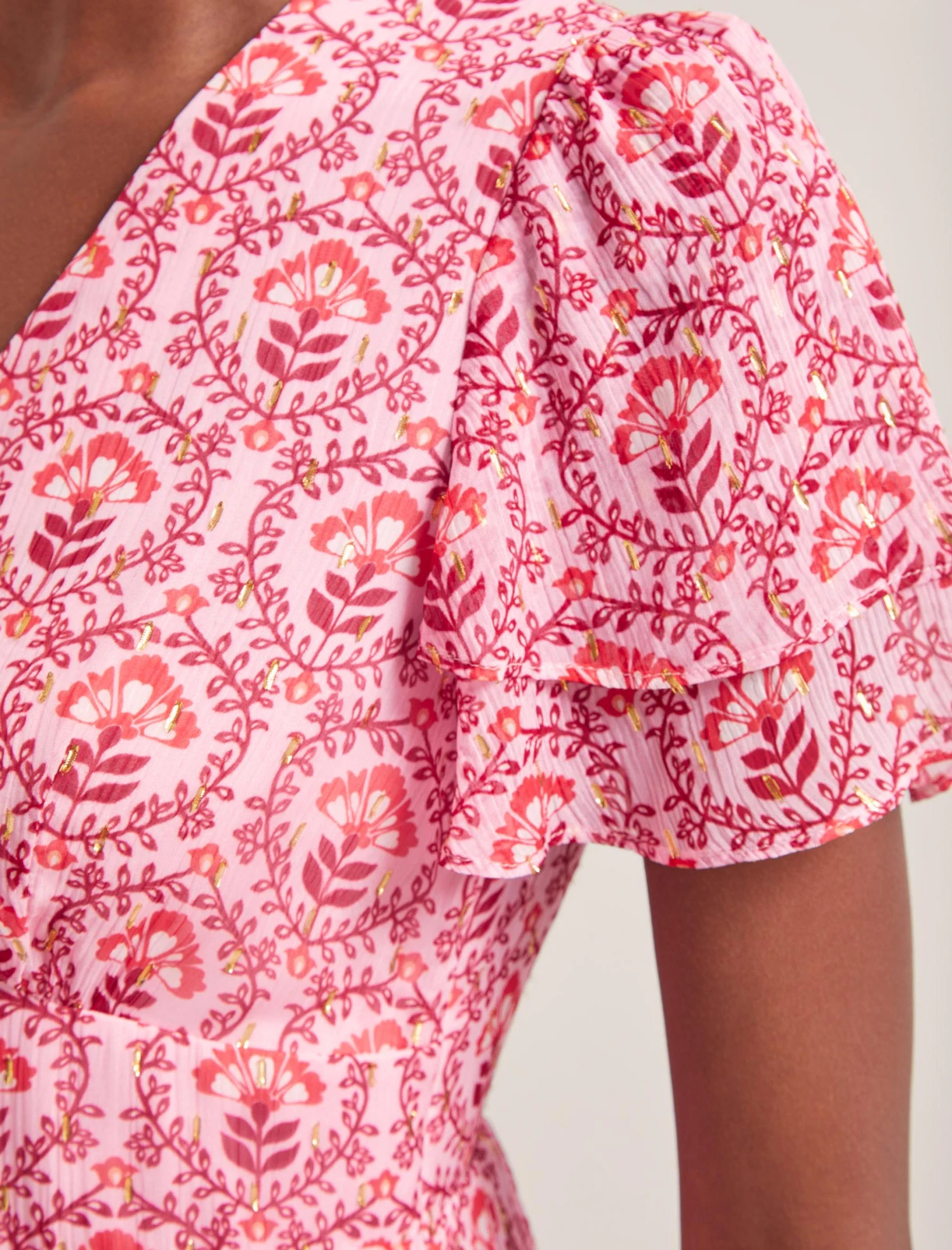 Your perfect plus-one for parties, weddings, and summer events, Lotta is cut from floaty georgette with glittering gold metallic fil coupé detailing to give light-reflecting sparkle. The shirred elasticated back makes it as effortless to wear as it is to style – just add on-trend gold accessories and you’re good to go.