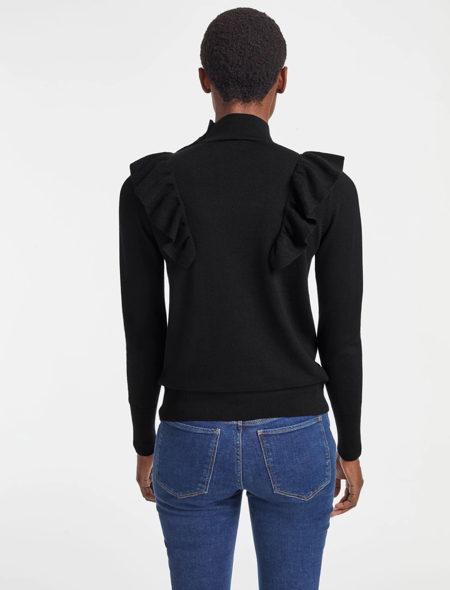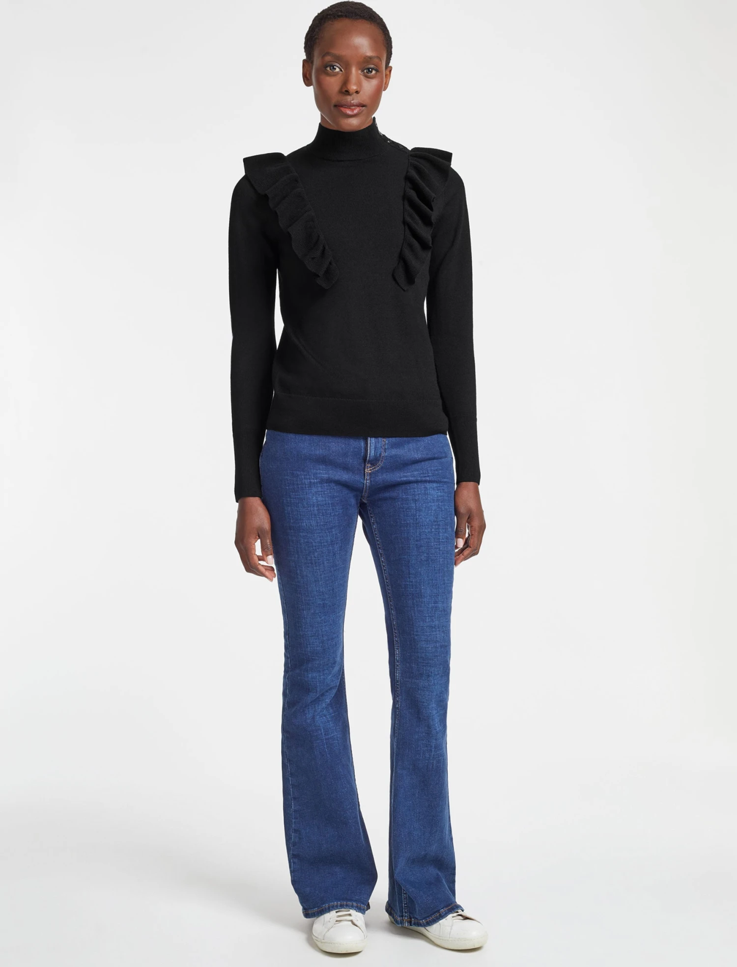 Your smart, new knitwear fix? Our (non-mulesing) merino wool Loulou style. An elevated take on a classic sweater, its summary-down shoulder ensures everyday wearability, while its frill detailing not only accentuates the waist but adds a hint of feminine flair. Perfect for upgrading your weekend attire – think a jean or wide-leg leather trouser and chunky boots.