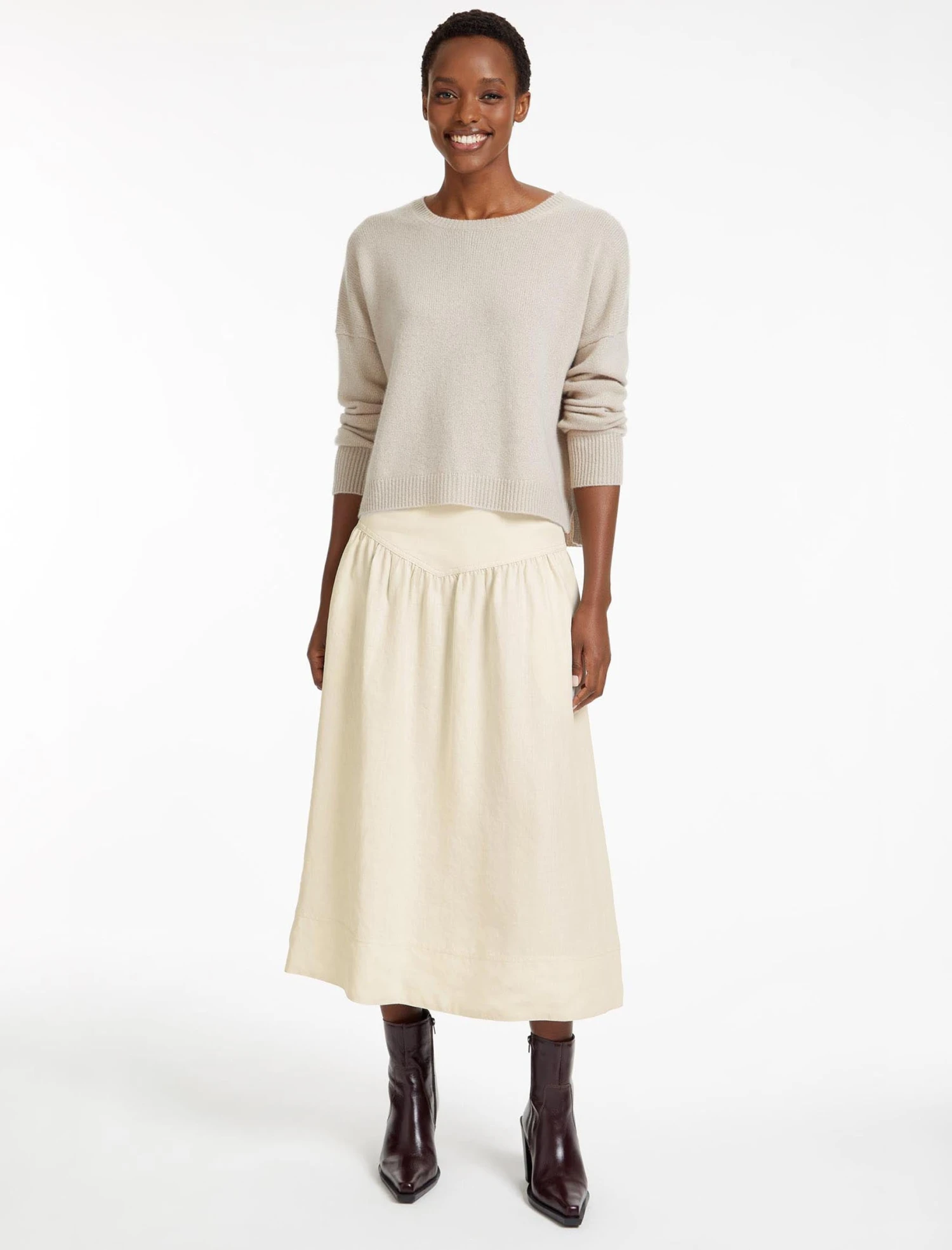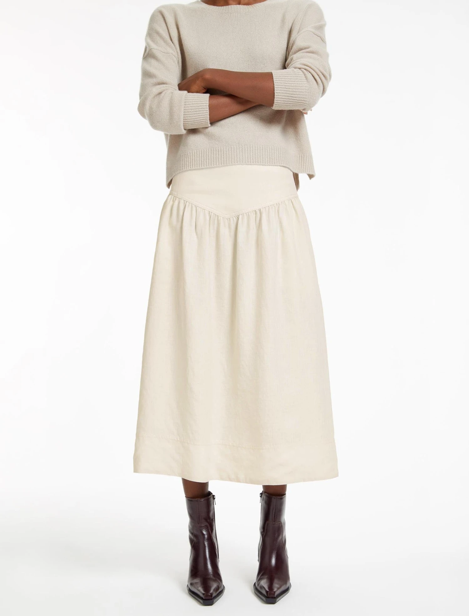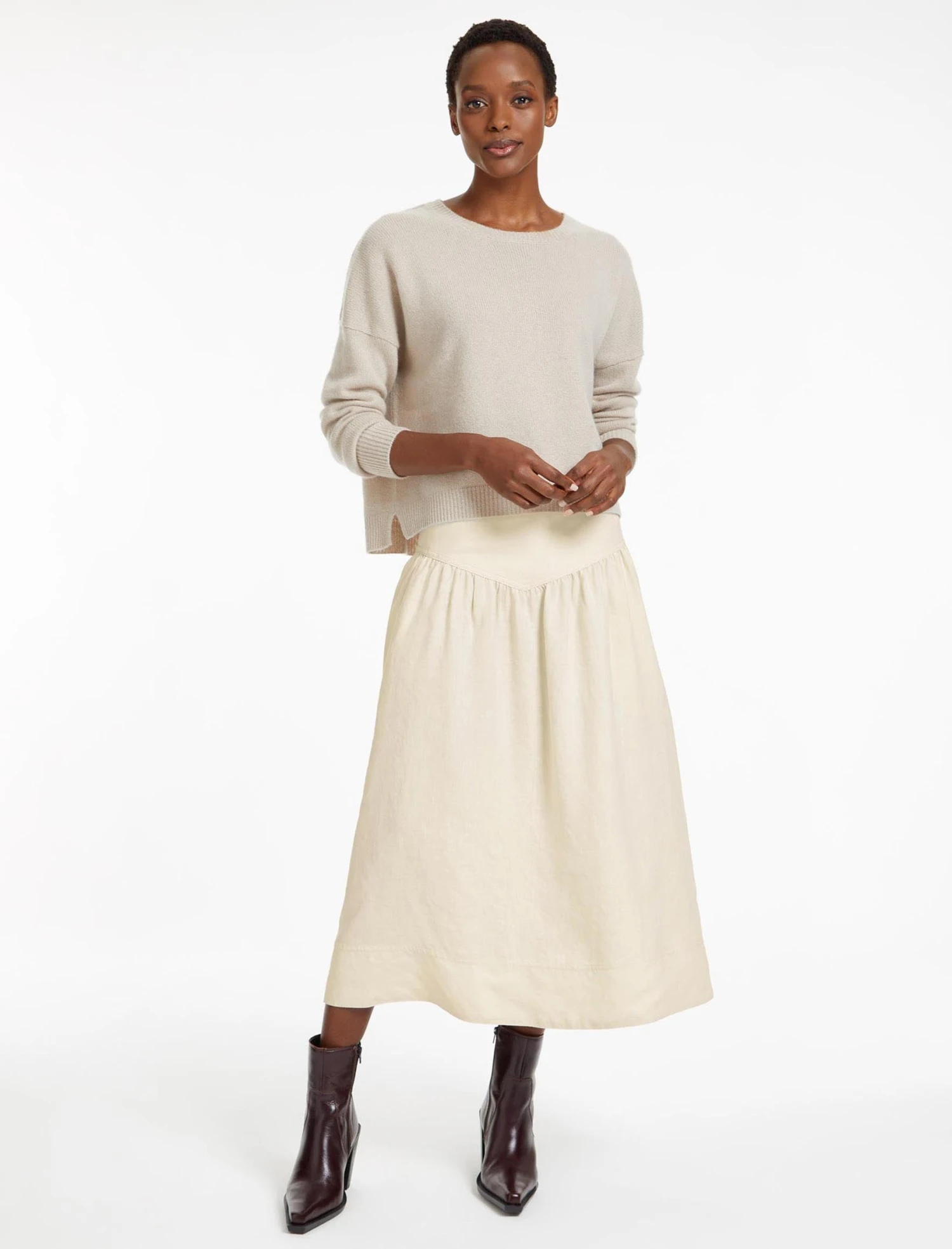 The ultimate spring/summer wardrobe go-to, our cream Lyla skirt is cut from a Techni-Linen with utility-style twin-needle stitching, a flattering gathered drop waist and discreet side pockets. Combining the crisp feel of a linen with the practicality of a washable fabric, it’s perfect for relaxed days whether at home or abroad. Wear with a simple tee or one of our spring knits.