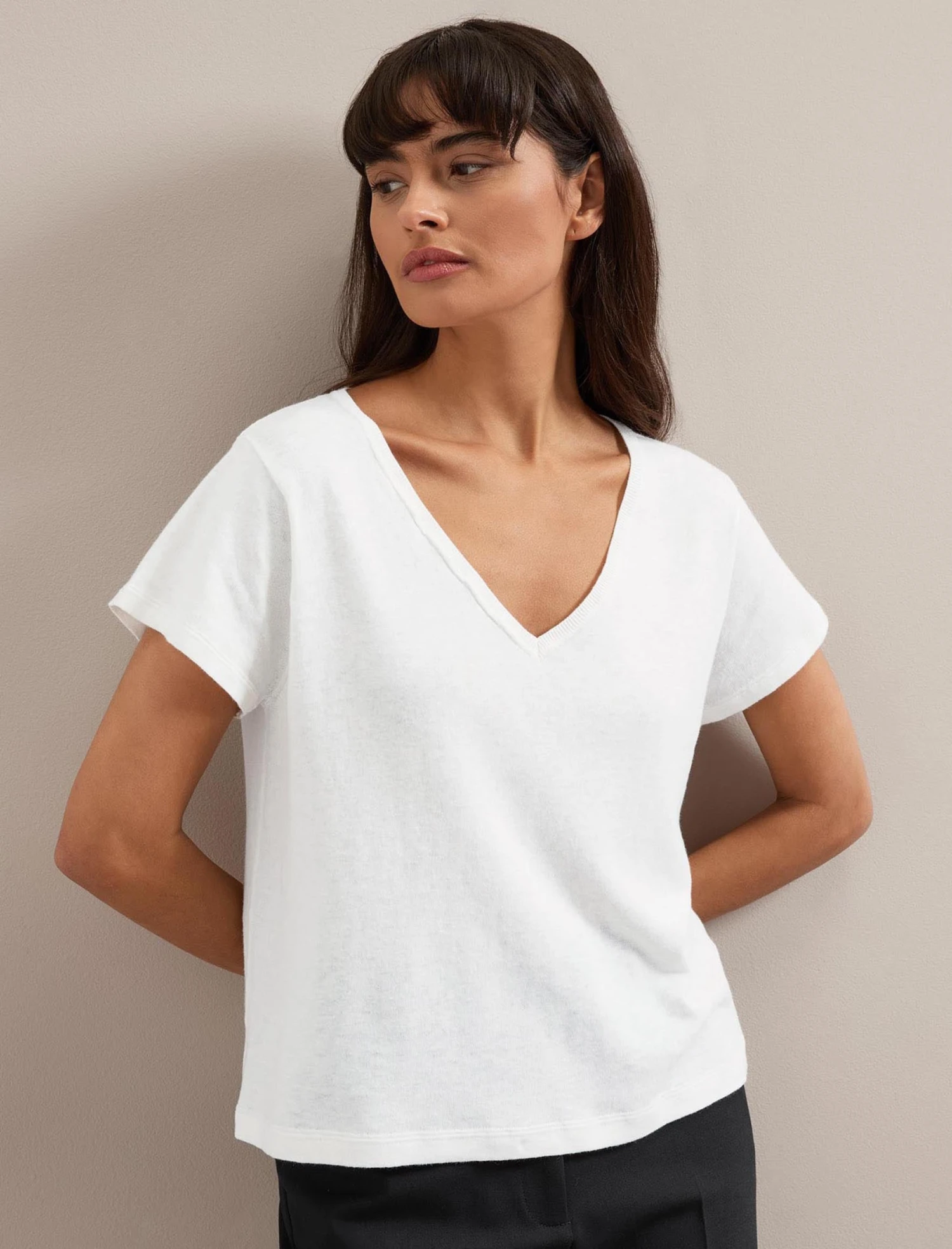 Anything but basic, our Madison T-shirt is knitted in a fine cotton linen blend that is cool and luxurious to wear. Knowing the power of a great tee as a summer wardrobe building block, we have obsessed over the fit to make sure it’s next-level– not too big or too small, the ideal length to be worn tucked or untucked, and the perfect V-neck for just the right amount of décolletage.
