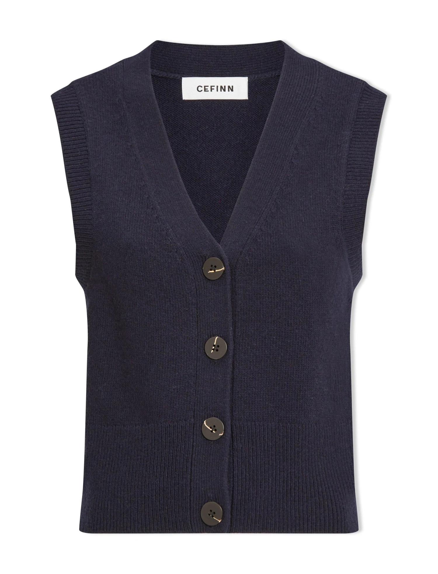 The perfect year-round layering staple, we’ve designed Meryl in a classic navy blue wool blend. Whether worn under a blazer or alone (summaryed or undone for a more androgynous look), the flattering knitted waistcoat silhouette and fitted armholes fit snugly over T-shirts or long-sleeved tops. Contrast the on-trend knit with our crisp Techni-Linen Hayden or Tate trouser or Lyla skirt.