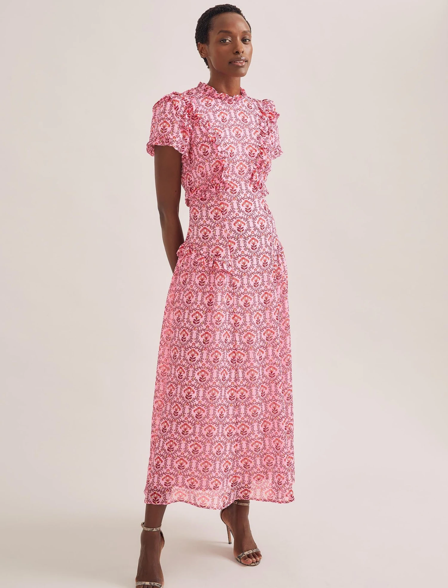 Designed in delicate georgette with shimmering gold metallic fil coupé detailing, Mirabel is the ultimate summer event dress. Fully lined yet light and airy, the contouring cut and frill placement is incredibly flattering making this the dress for a stand-out statement.