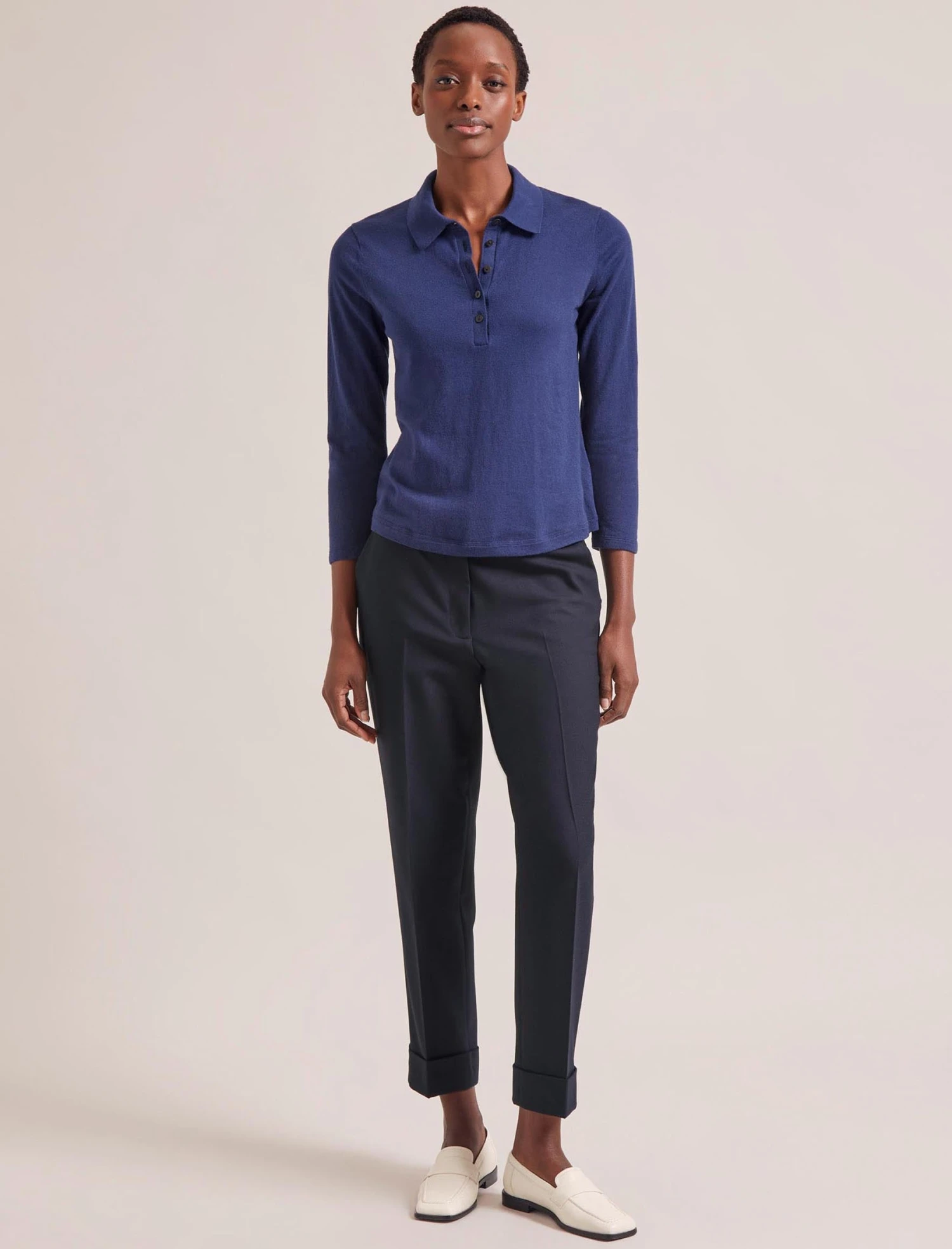 A smarter take on a classic T-shirt, Morgan is styled on a classic polo shirt with its short placket and collar. Cut from a fine silk-and-cotton blend, it’s also lightweight and endlessly wearable. With gentle shaping through the waist and a dipped hem for ease of styling, we think this could be your perfect spring-to-cool-summer top.