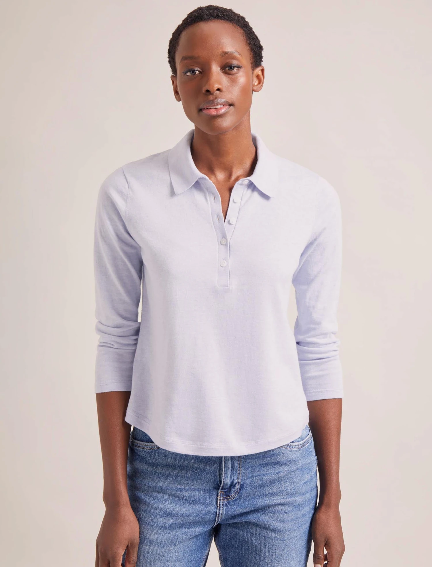 A smarter take on a classic T-shirt, Morgan is styled on a classic polo shirt with its short placket and collar. Cut from a fine silk-and-cotton blend, it’s also lightweight and endlessly wearable. With gentle shaping through the waist and a dipped hem for ease of styling, we think this could be your perfect spring-to-cool-summer top.