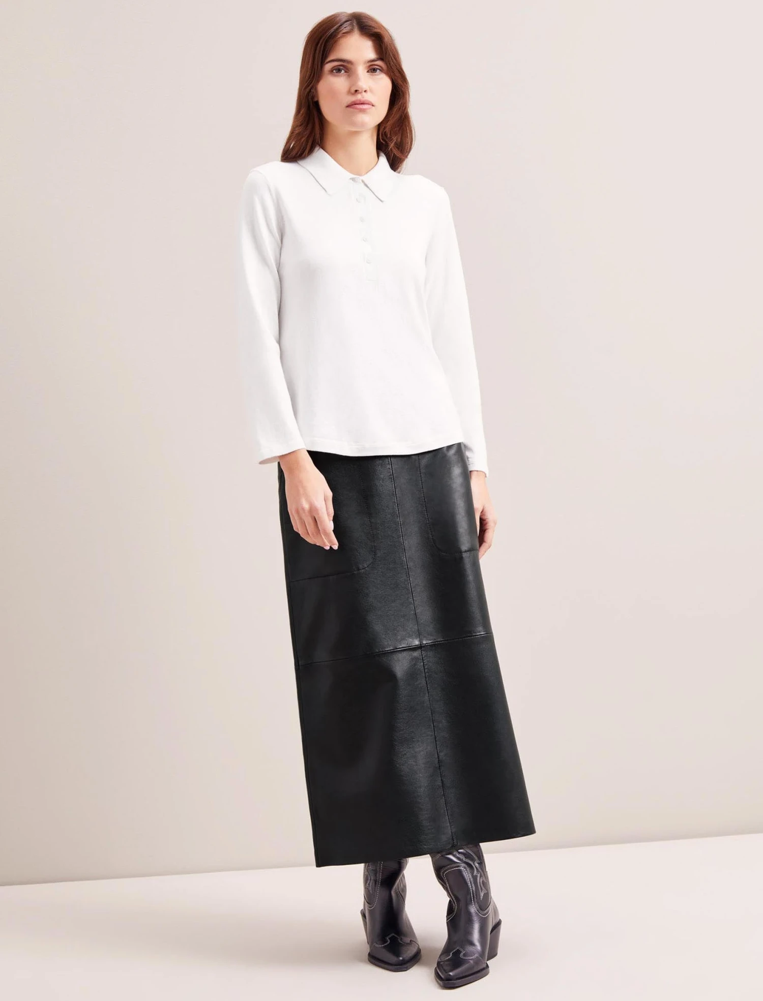 A smarter take on a classic T-shirt, Morgan is styled on a classic polo shirt with its short placket and collar. Cut from a fine silk-and-cotton blend, it’s also lightweight and endlessly wearable. With gentle shaping through the waist and a dipped hem for ease of styling, we think this could be your perfect spring-to-cool-summer top.