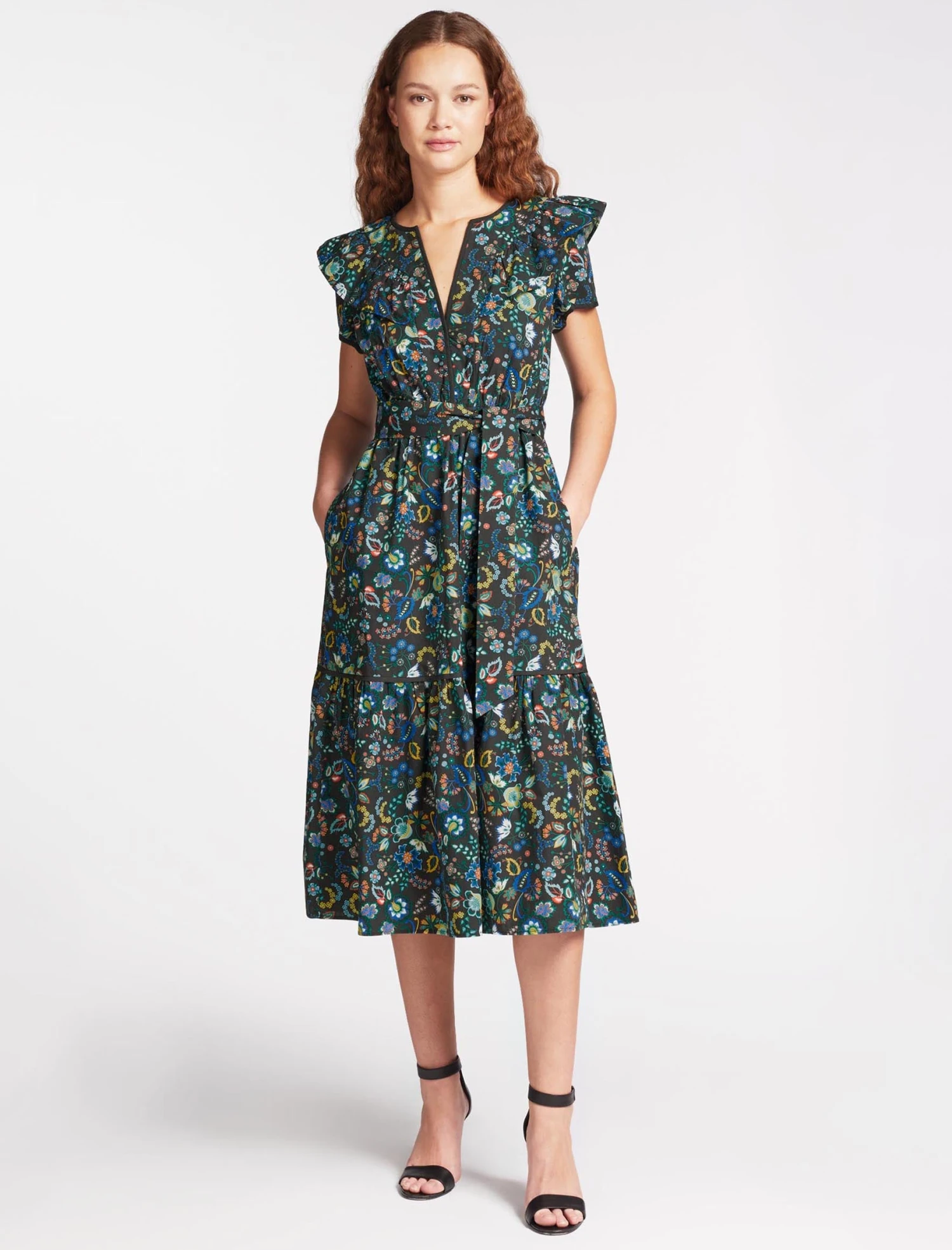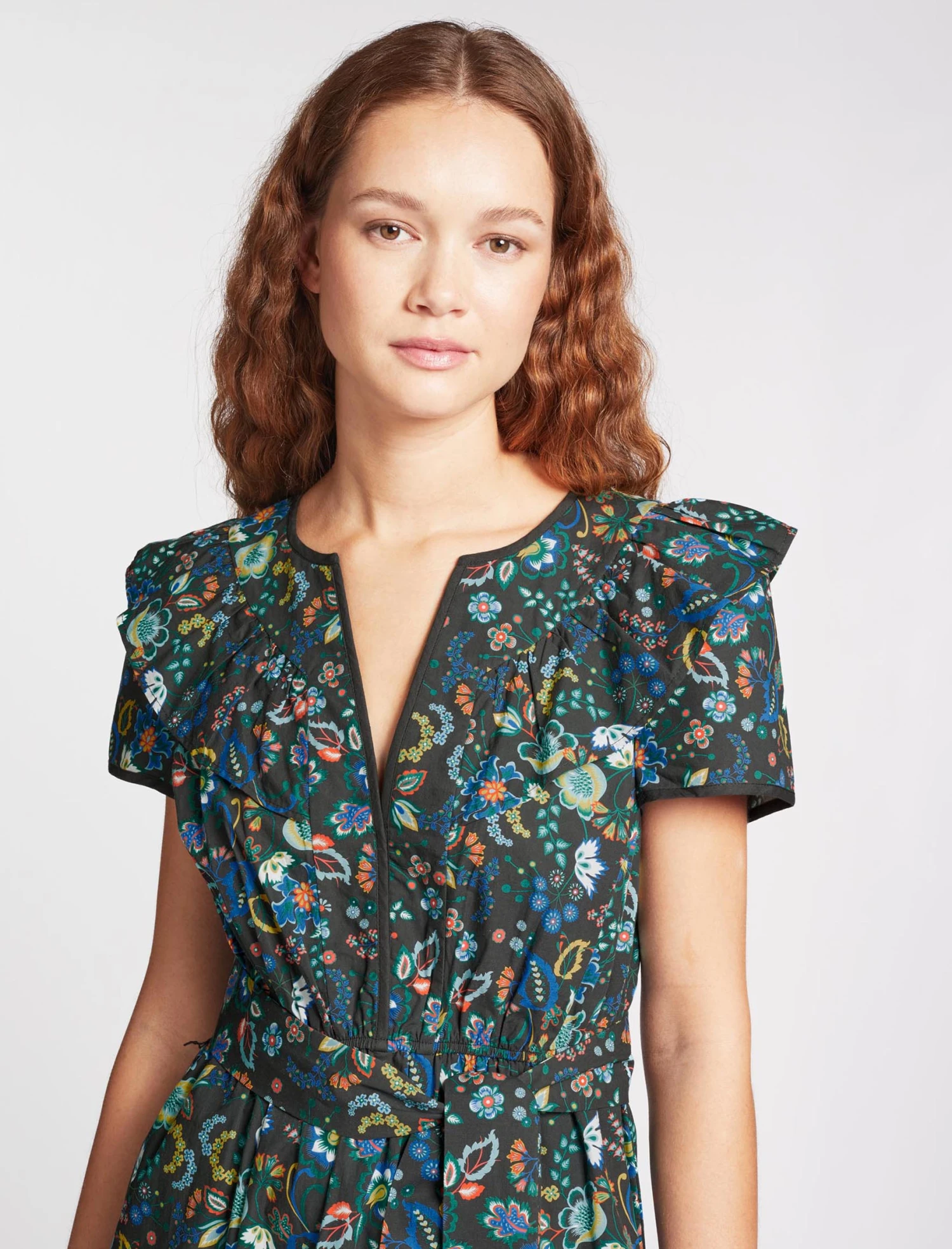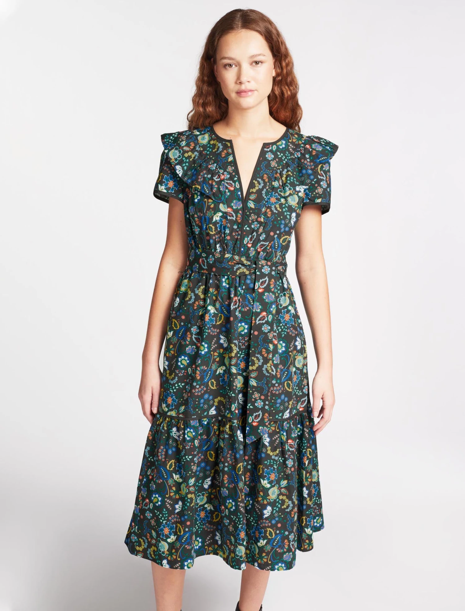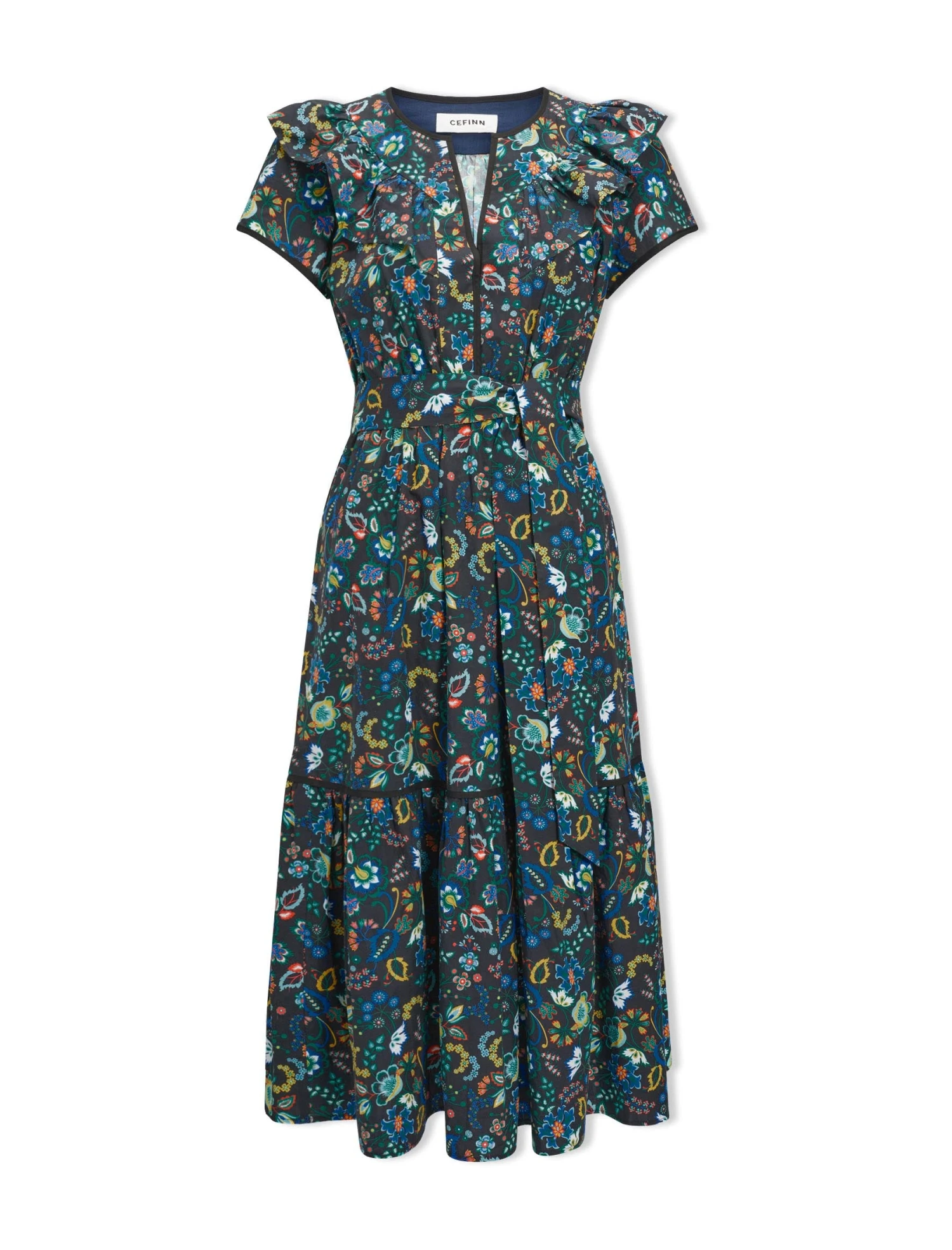 Nessa Organic Cotton Midi Dress – Multi Coloured Large Floral Print