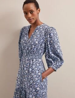 A failsafe for smarter summer dressing, Nina has a gently fitted bodice that falls to a loose waist with a long, gathered skirt that makes it so easy to wear. Cut in a beautiful drapey cotton viscose voile, this season it comes in the prettiest micro blossom, our exclusive in-house designed print. Cinch in with the removeable belt, swap out for one of your own or wear lose for easy breezy elegance.
