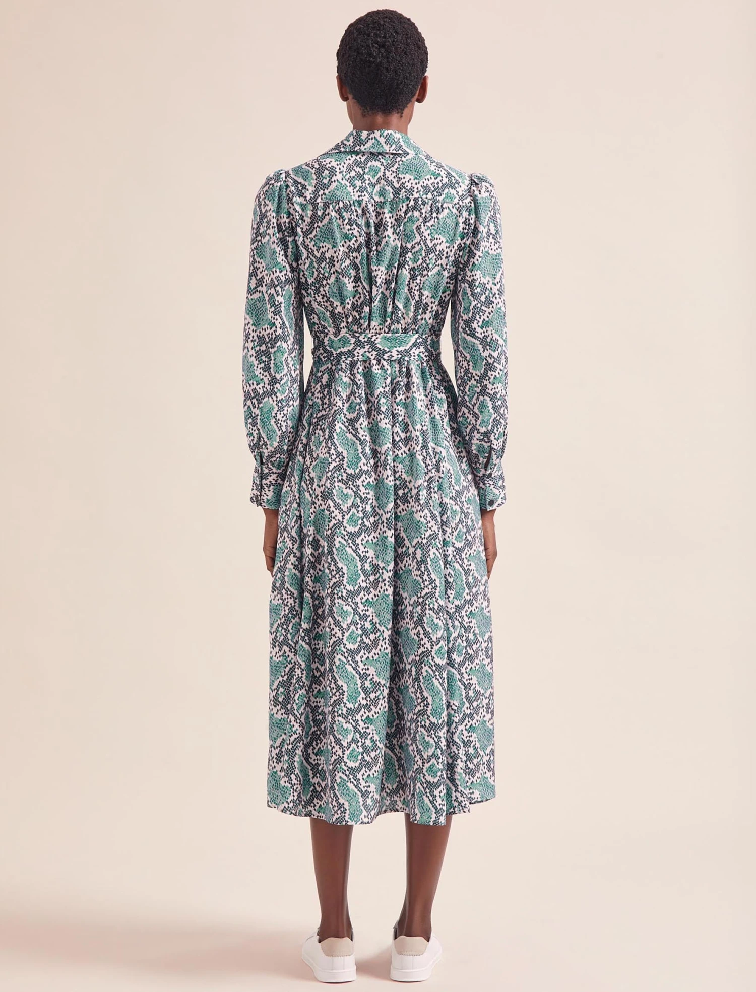 Odette is an effortlessly elegant shirt dress elevated to new levels with beautiful detailing. Cut in a hammered crepe, the exaggerated notch lapel, blouson sleeve, deep cuff and side slits on the skirt add fashion edge and an understated sexiness. This is the dress to take you seamlessly from work meetings to evening drinks and dinner in confident style.