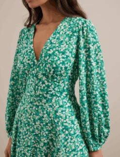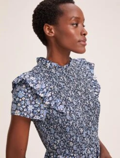 Sabrina Cotton Blend Maxi Dress – Blue Ditsy Carnation Print