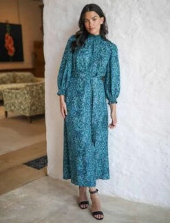 Lotta Gold Metallic Fil Coupé Maxi Dress – Pink Carnation Print