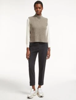 Janie Sleeveless Funnel Neck Jumper – Taupe