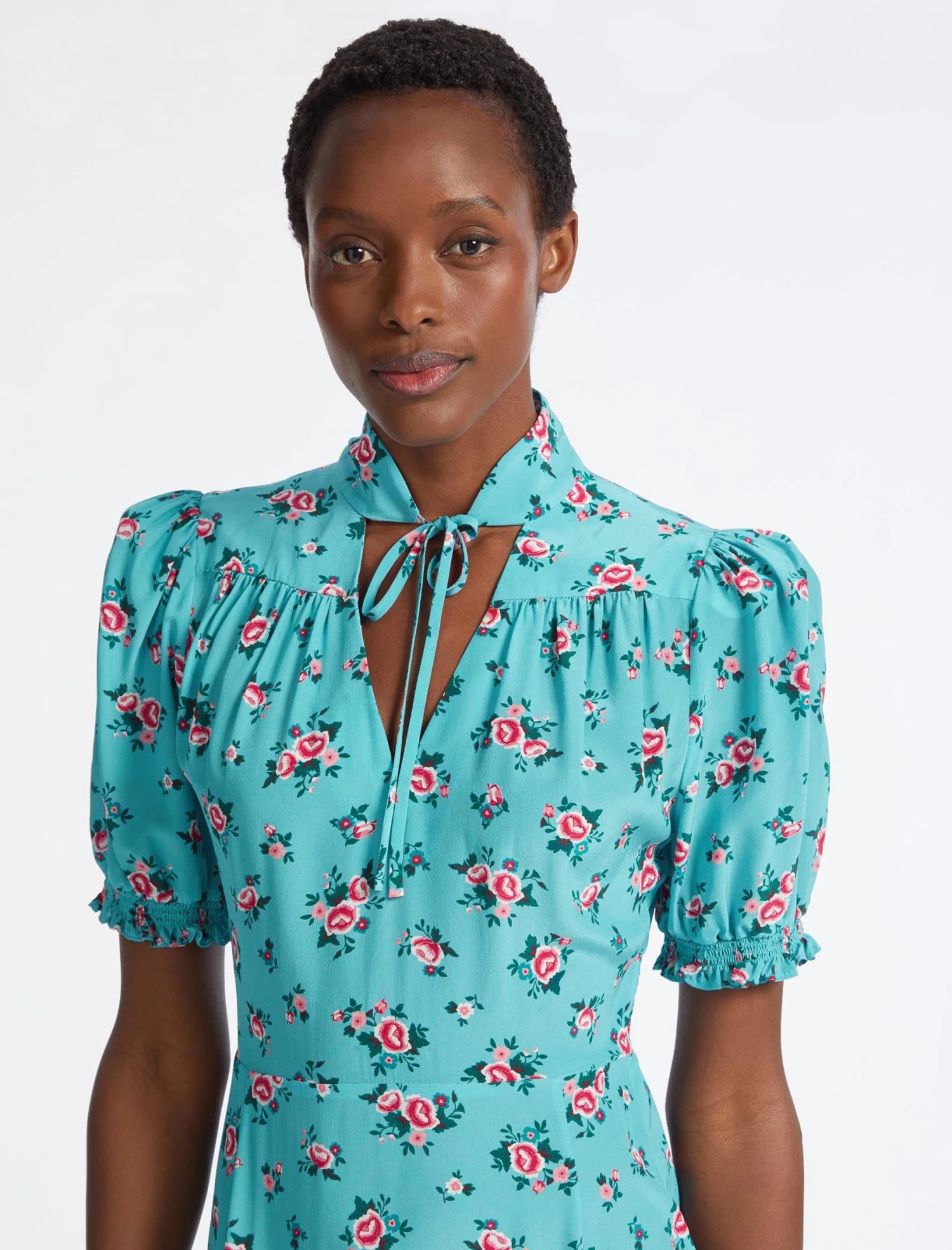 Rebecca offers a more grown-up and dressier spin on summer’s favourite dress: the floaty floral. Strewn with rose sprigs, it has a tie collar (in the style of our best-selling Jacquetta dress) and short puff sleeves that lend it polish and elegance. Designed for day-to-evening, summer-to-autumn wear, simply add knee-length boots and a slim-knit cardigan as the leaves begin to turn and the days shorten.