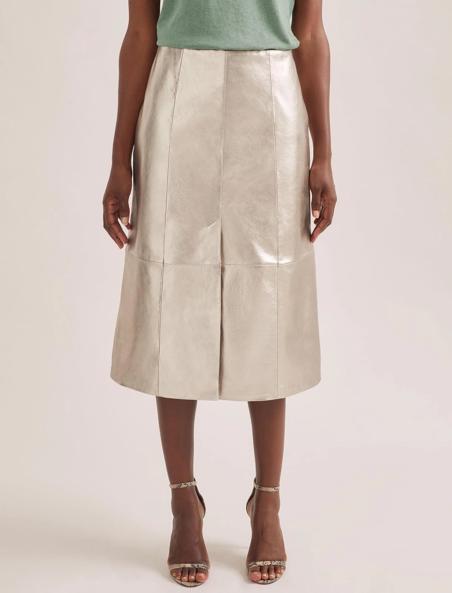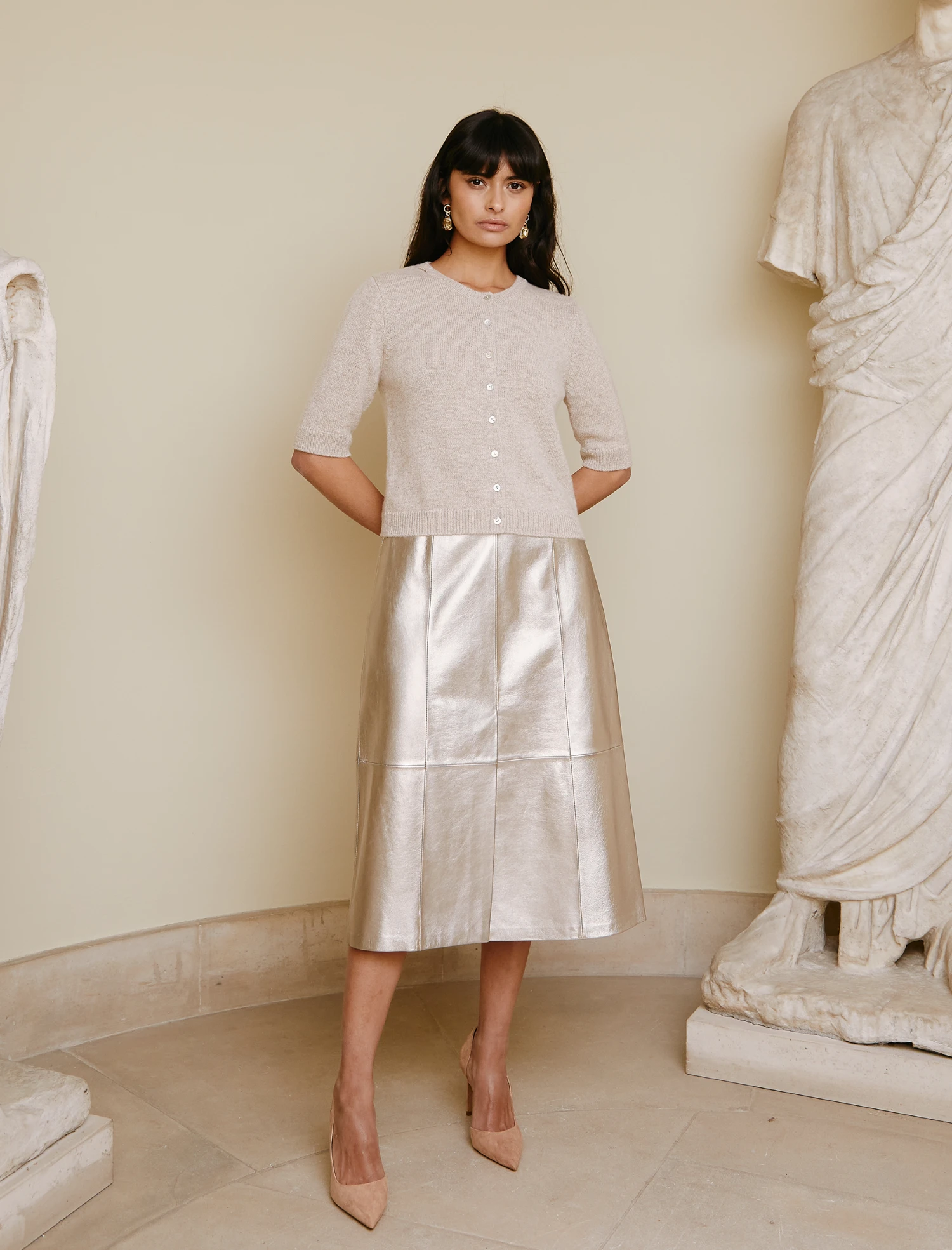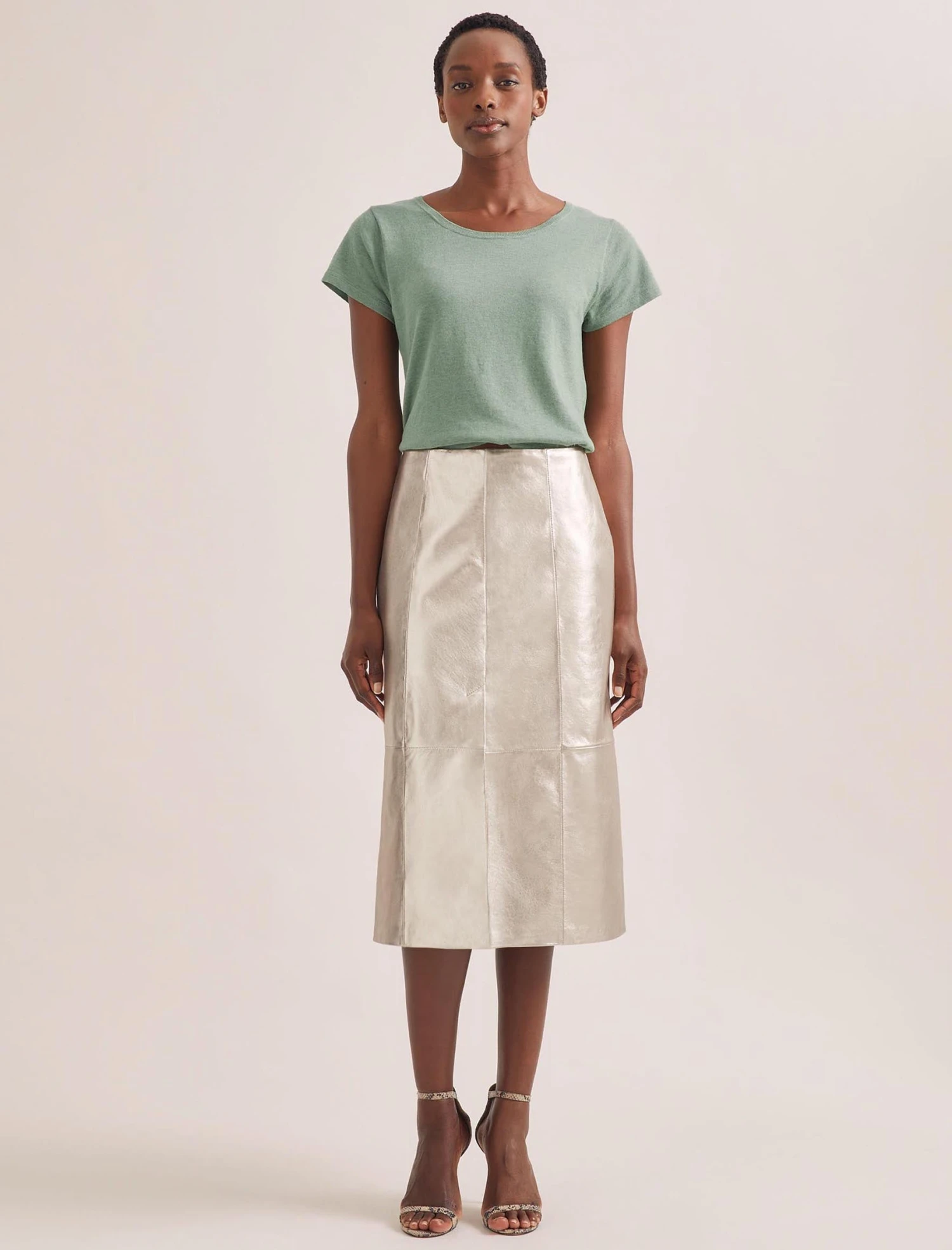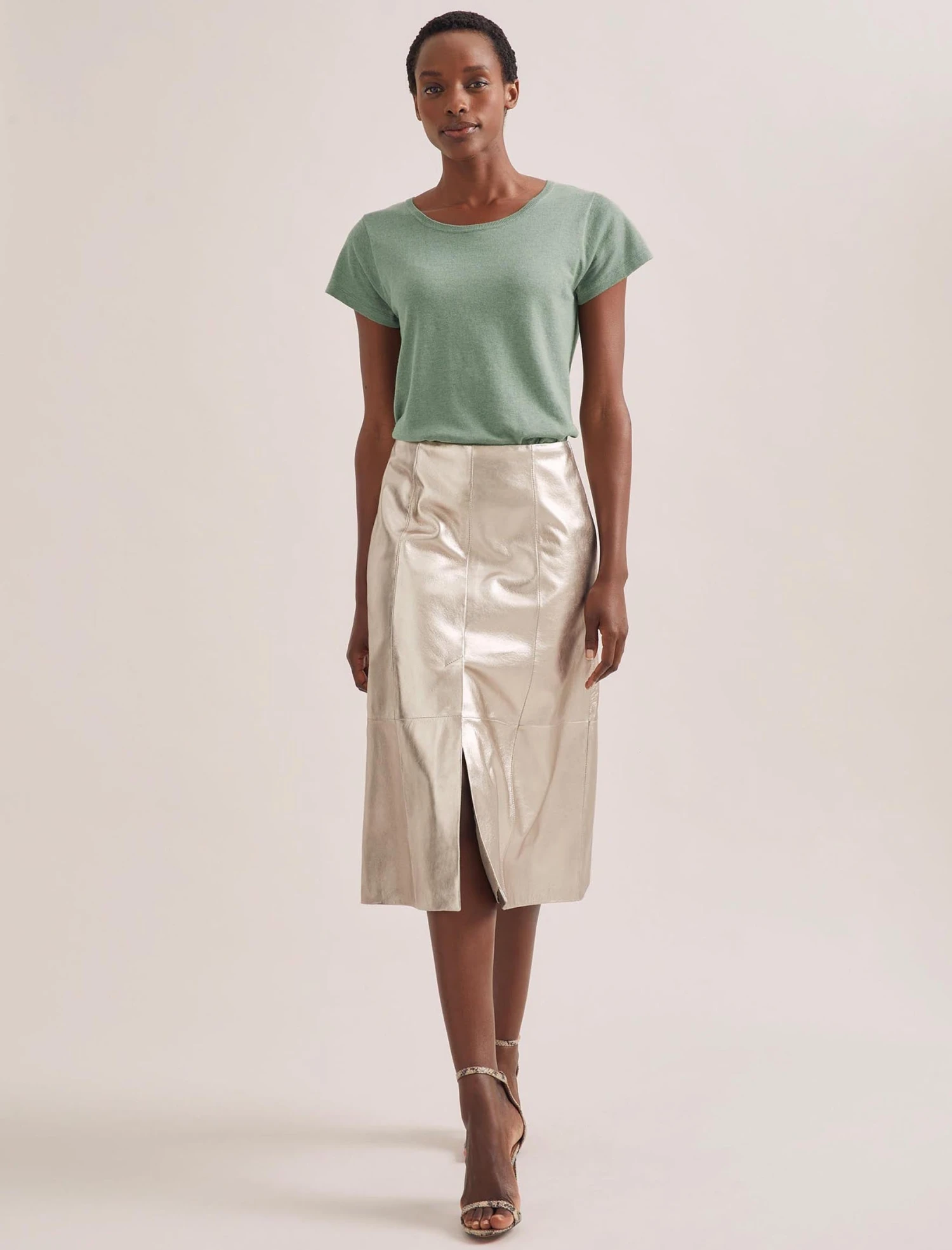 The latest addition to our lauded leather skirt collection, Robyn is a stand-out metallic pencil skirt. Designed in an on-trend light gold, it looks super-chic styled with white, cream or taupe neutrals and works equally well with gold or silver accessories. Wear now with a strappy heel for sundowners or switch up with a boot to give it new life long beyond summer.