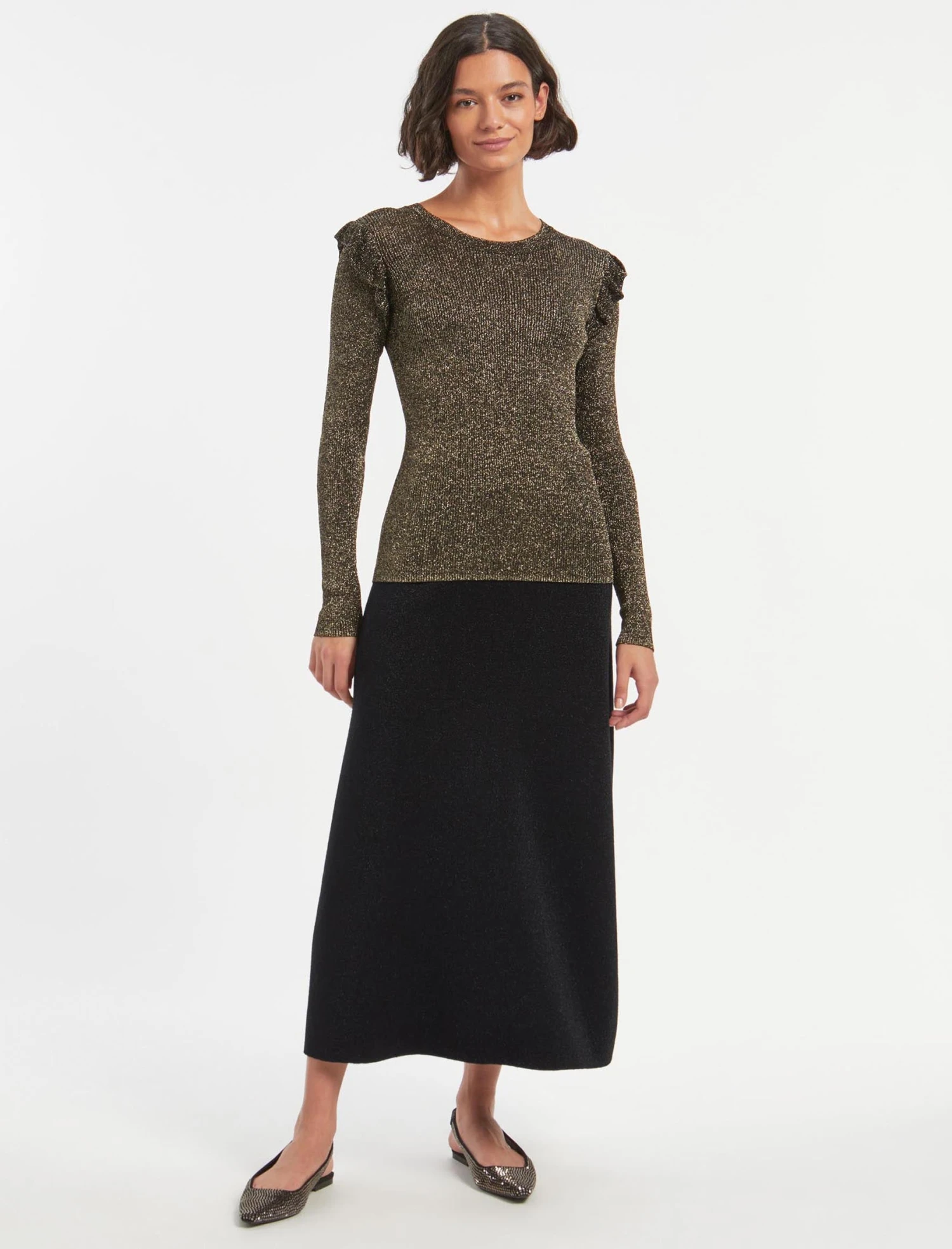 Cut from a heavy, double-face knit with a sparkly Lurex yarn, our Sasha skirt is structured yet effortless to wear (not to mention warm) for the winter. Ideal for more casual evenings with our matching Josie top, tone it down for daytime with a chunky knit.