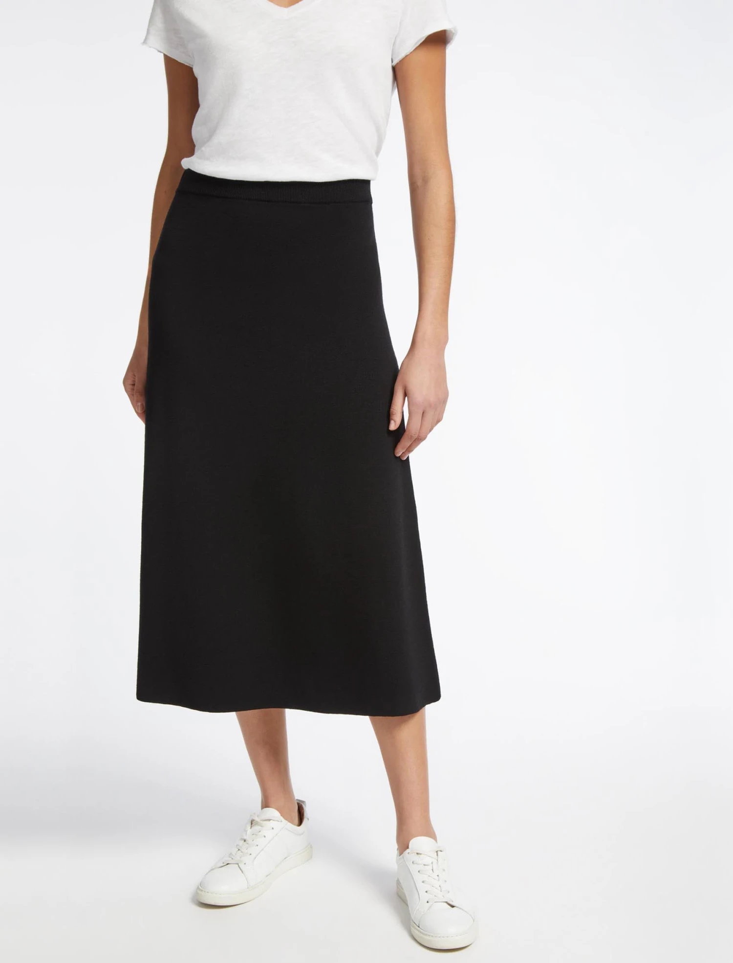 Who doesn’t love the ease and warmth of a knitted skirt? Cut to a flattering A-line silhouette, the mid-length Sasha skirt feels feminine and stylish, even on the chilliest of days. Designed in a machine-washable merino wool with a slight stretch, the elasticated waist and weightier feel add to its versatility. Wear with our Josie or Olivia jumper, a boot and tights, changing to a trainer or ballet pump in spring.