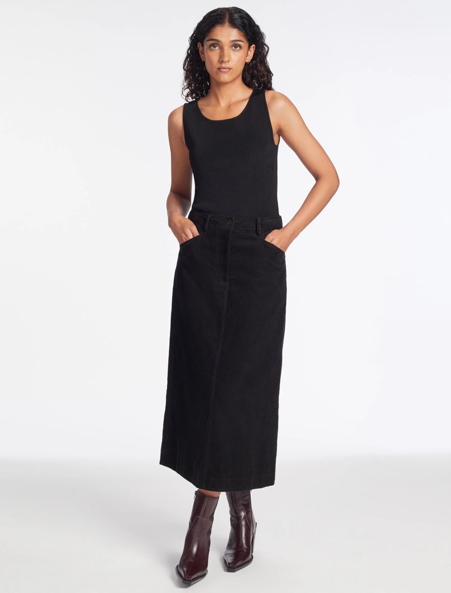 A workwear staple for decades, the autumn/winter 2023 shows saw the pencil skirt renew its fashion status. We’ve given our maxi Shona version a contemporary spin in a wide-wale cotton corduroy. A versatile, all-year-round style, play it safe with a fine-knit top or opt for an unsummaryed white shirt tucked in for seductive charm. Simply add tights and a long boot when the temperature really starts to drop.
