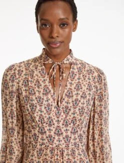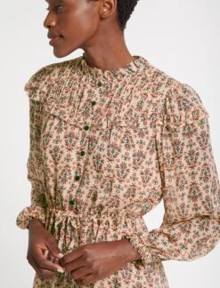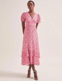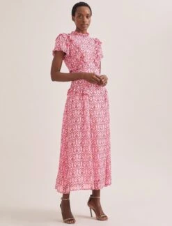 Lotta Gold Metallic Fil Coupé Maxi Dress – Pink Carnation Print